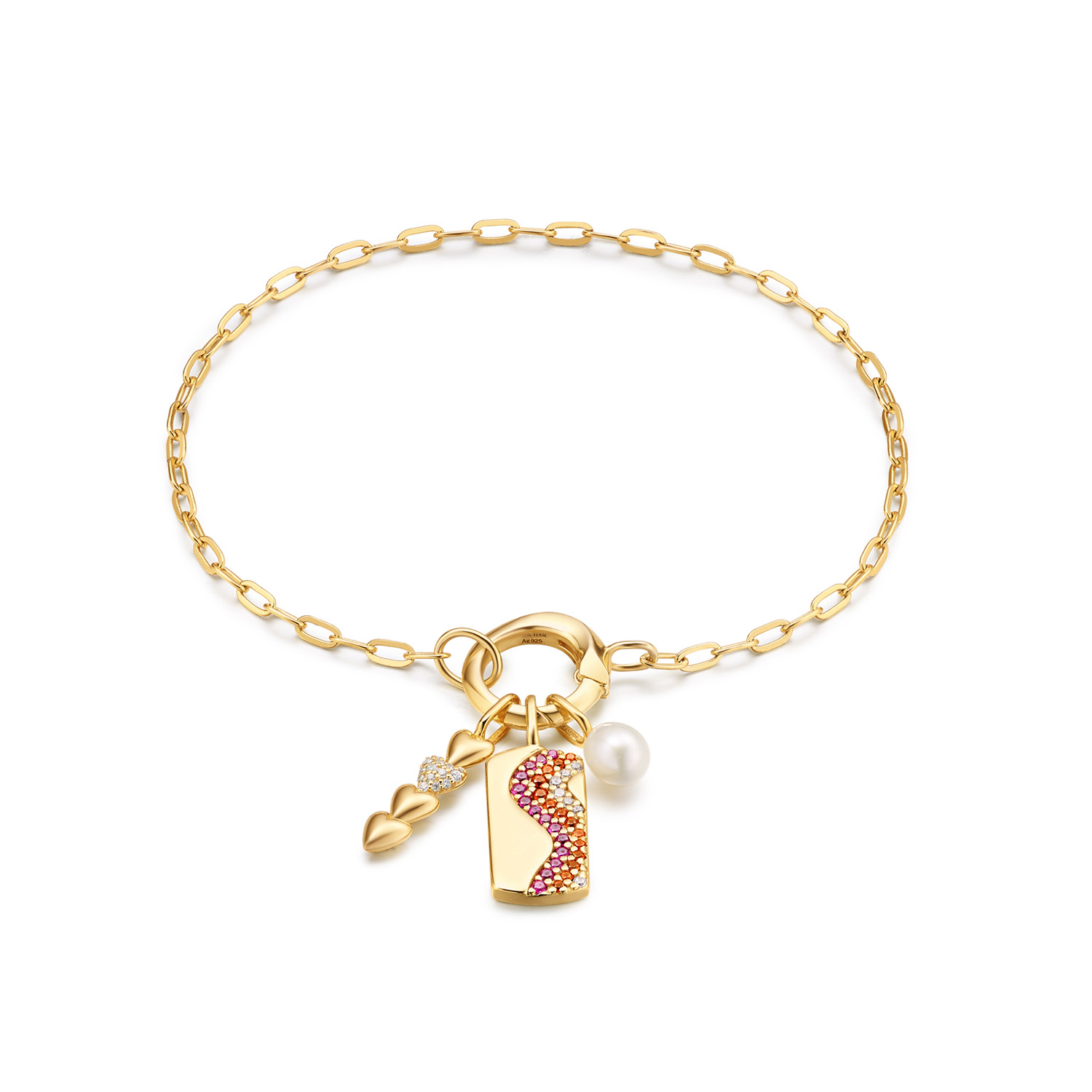 Geef je ketting een upgrade met deze kleurige bedel, perfect wanneer je zin hebt in sprankeling. De bedel bevat sprankelende zirkonia stenen, roze korund en nano edelstenen en is gemaakt van 925 sterling zilver met 14 karaat gouden plating. Bevestig je bedel eenvoudig aan een kettng, armband of connector.