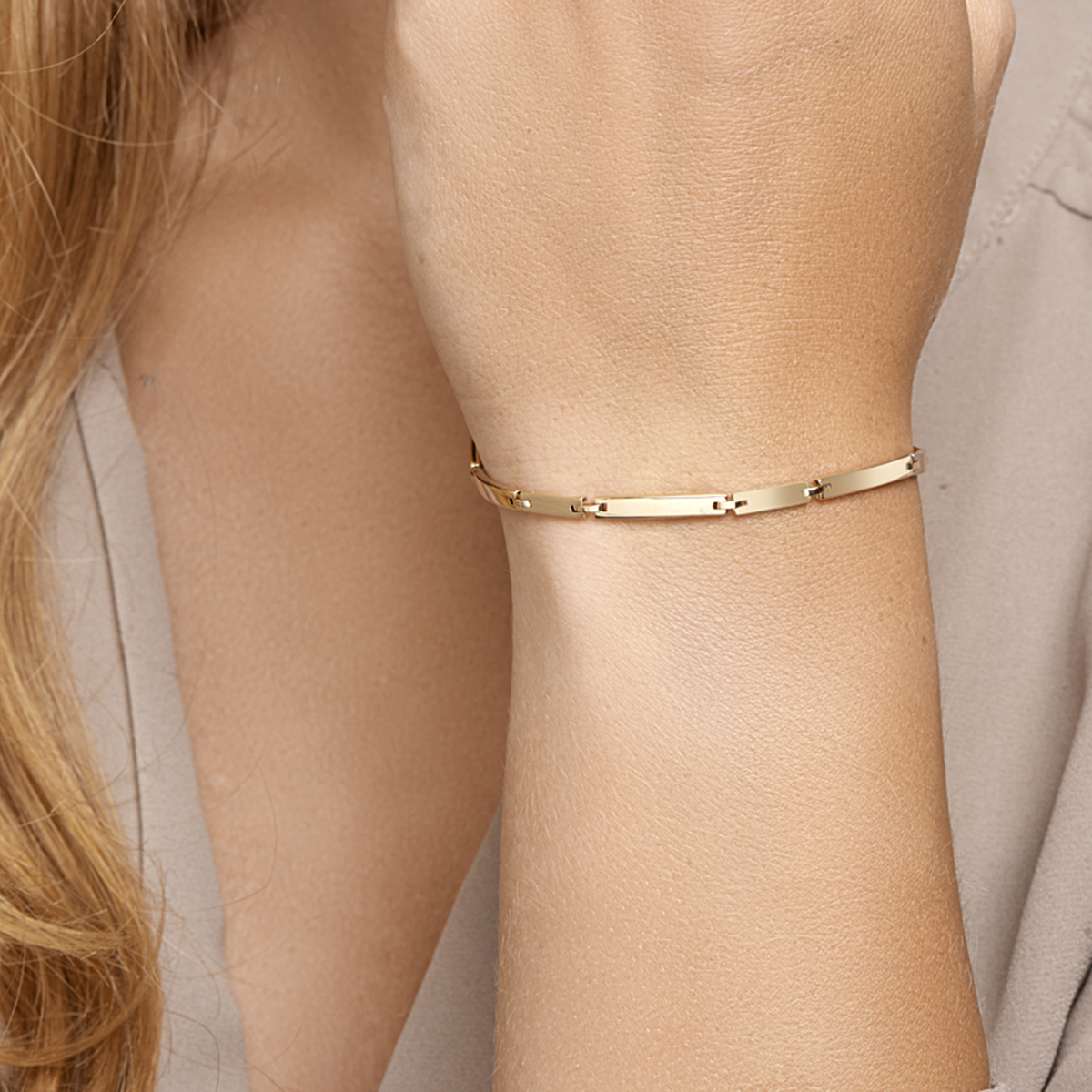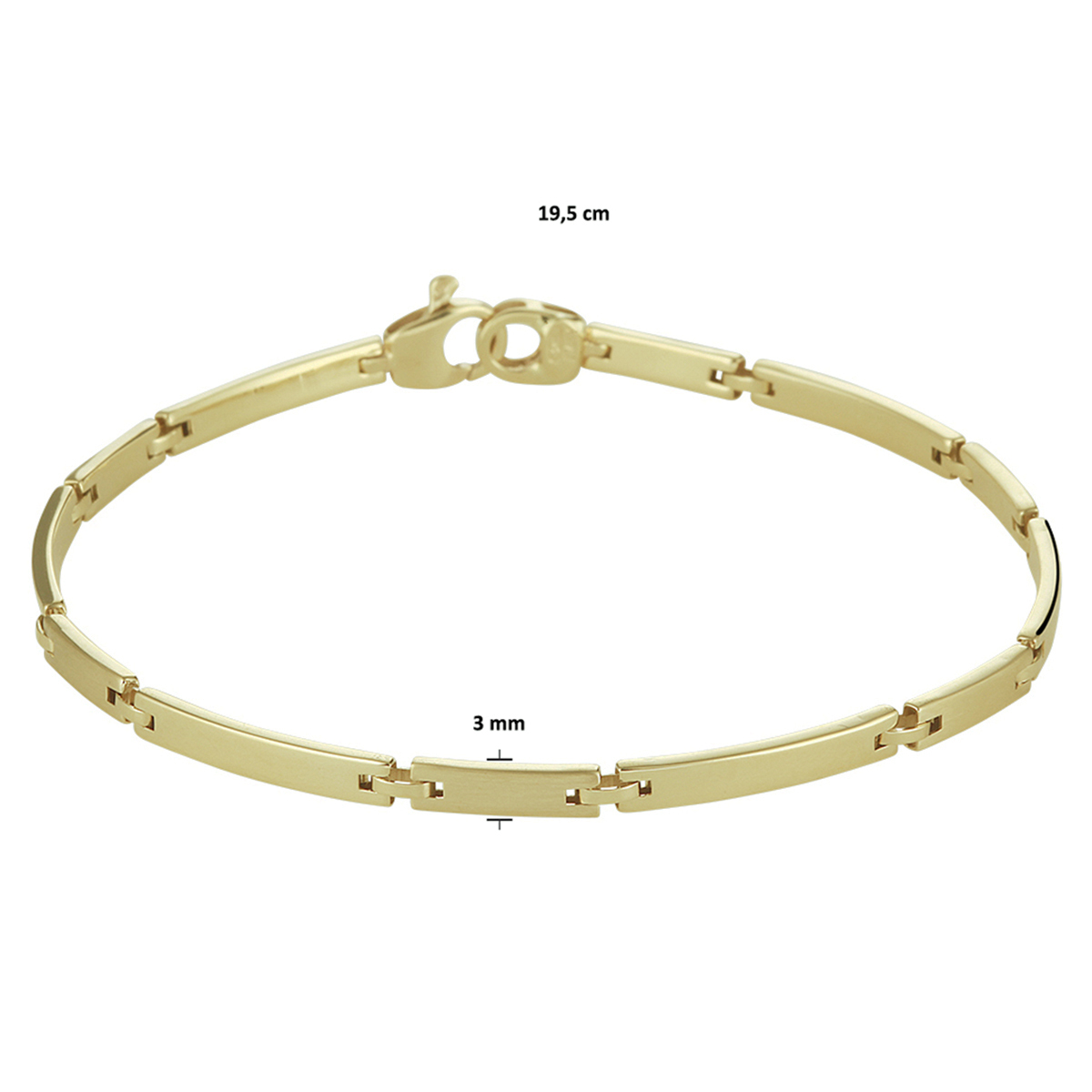 14k Geelgouden armband uitgevoerd met een stevige karabijn sluiting. De armband heeft een draaglengte van 19.5cm en is poli/mat afgewerkt. De schakelbreedte is 3.0mm.