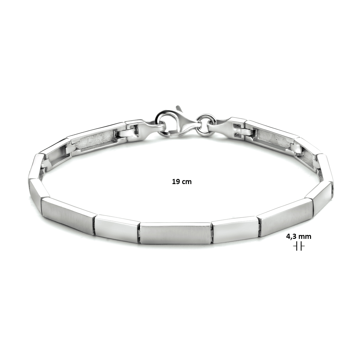 Gerhodineerd 925 zilveren armband uitgevoerd met een poli/matte afwerking en een stevige karabijn sluiting. De armband heeft een breedte van 4.3mm en een draaglengte van 19cm.