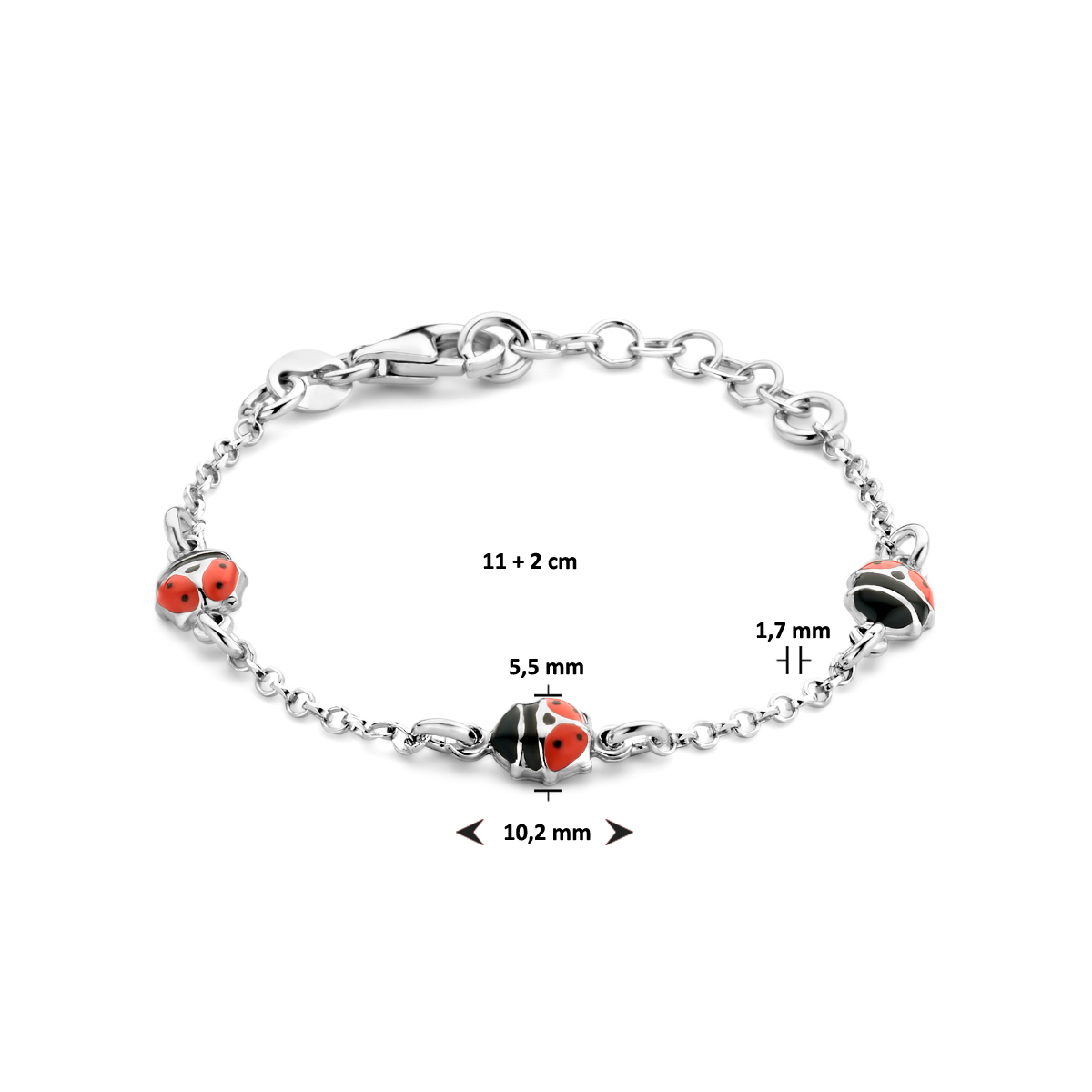 Deze prachtige zilveren armband met lieveheersbeestjes heeft een schattig en speels ontwerp dat gegarandeerd de aandacht trekt. De armband is gemaakt van hoogwaardig zilver en is verstelbaar, zodat hij perfect om elke pols past. Draag deze armband alleen voor een subtiele look of combineer hem met andere sieraden voor een statement look. De beste manier om deze armband te dragen is om hem strak om je pols te laten zitten, zodat de lieveheersbeestjes goed zichtbaar zijn. Deze armband is een perfect cadeau voor jezelf of een geliefde.