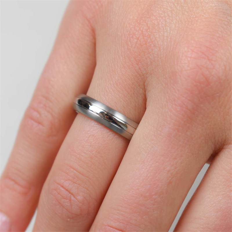 Deze gematteerde ring van Boccia Titanium heeft een glanzend accent. De ring is 5mm breed.