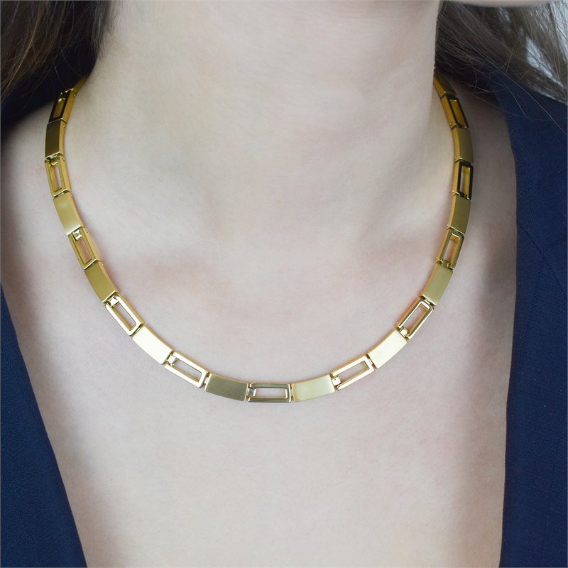 Dit prachtige collier van Boccia is gemaakt van titanium met een gouden coating. De ketting is licht van gewicht, hypoallergeen en anti-allergisch. Het collier heeft een elegante en tijdloze uitstraling, perfect voor elke gelegenheid. Draag het op zichzelf als een statementstuk of gelaagd met andere kettingen voor een trendy look. Voeg deze stijlvolle accessoire vandaag nog toe aan je collectie!
