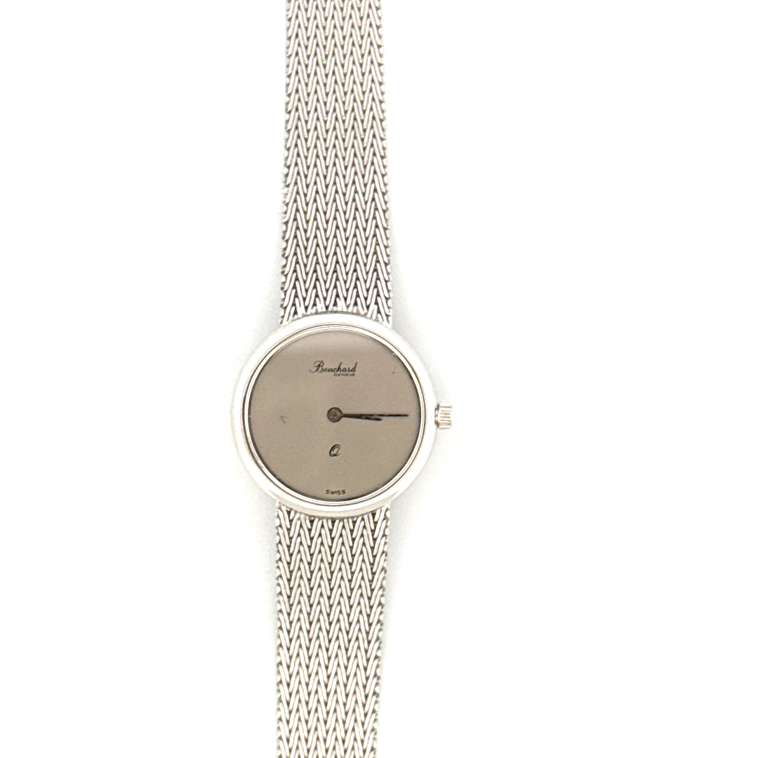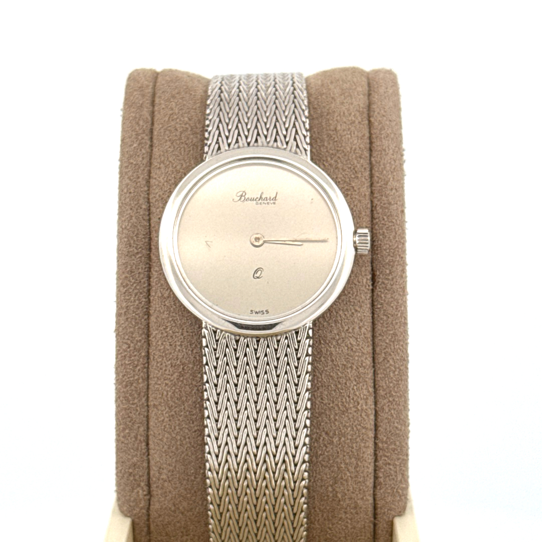 De Bouchard Horloge 11752630 is een verfijnd polshorloge met een gouden kast en een zilverkleurige band van echt goud. Met een kastgrootte van 24 is het de perfecte accessoire voor een elegante uitstraling. De chronograaffunctie ontbreekt, waardoor de focus ligt op pure klasse. Combineer met formele of chique casual outfits voor een tijdloze look.