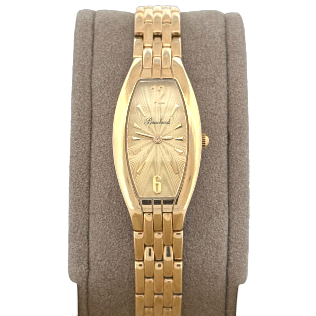 De Bouchard Horloge 14 krt geelgoud is een elegante polshorloge gemaakt van hoogwaardig goud, met een gouden band en geen datumaanduiding. Ideaal voor speciale gelegenheden en dagelijks gebruik, past perfect bij zowel formele als casual outfits. De tijdloze gouden kleur voegt een vleugje luxe toe aan elke stijl. Een must-have accessoire!
