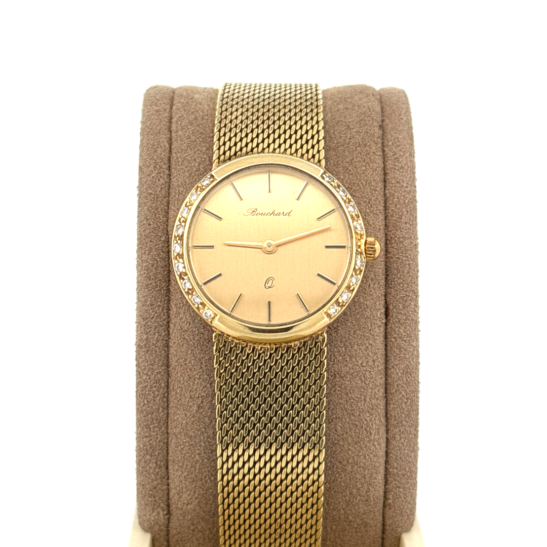 De Bouchard Horloge 14krt Geelgoud met Briljanten 11452-105 is een luxueus polshorloge van 14-karaats geelgoud, versierd met fonkelende briljanten. Dit prachtige accessoire straalt elegantie uit en is perfect voor chique gelegenheden. Draag het om uw pols voor een verfijnde uitstraling die elke outfit compleet maakt. Ideaal voor speciale momenten en dagelijkse glamour.