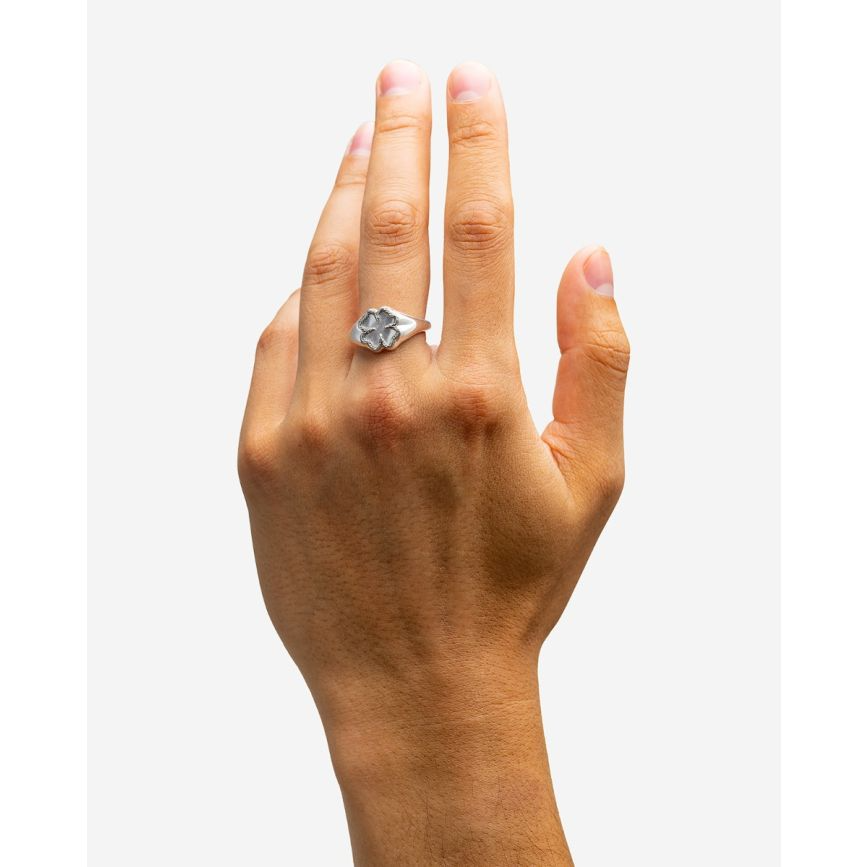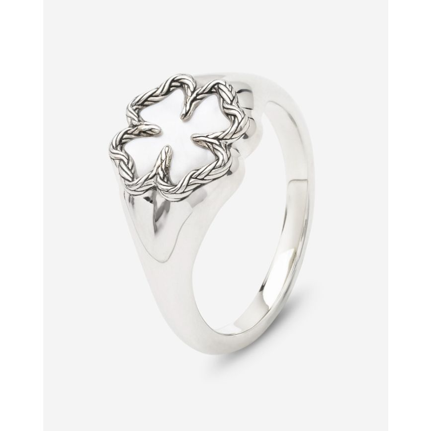 De Buddha to Buddha Signet Ring Katja Clover Mother of Pearl Silver (modelnummer 001J021781318) is een verfijnde zilveren ring met een prachtige parelmoeren klaver detail. Perfect voor maat 57. Draag deze elegante ring als een statement stuk op je middelvinger of als accent bij andere zilveren sieraden voor een stijlvolle look.