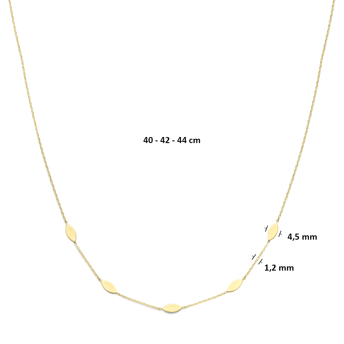 14k Geelgouden collier met draaglengtes van 40-42-44cm. Uitgevoerd met karabijnsluiting.
