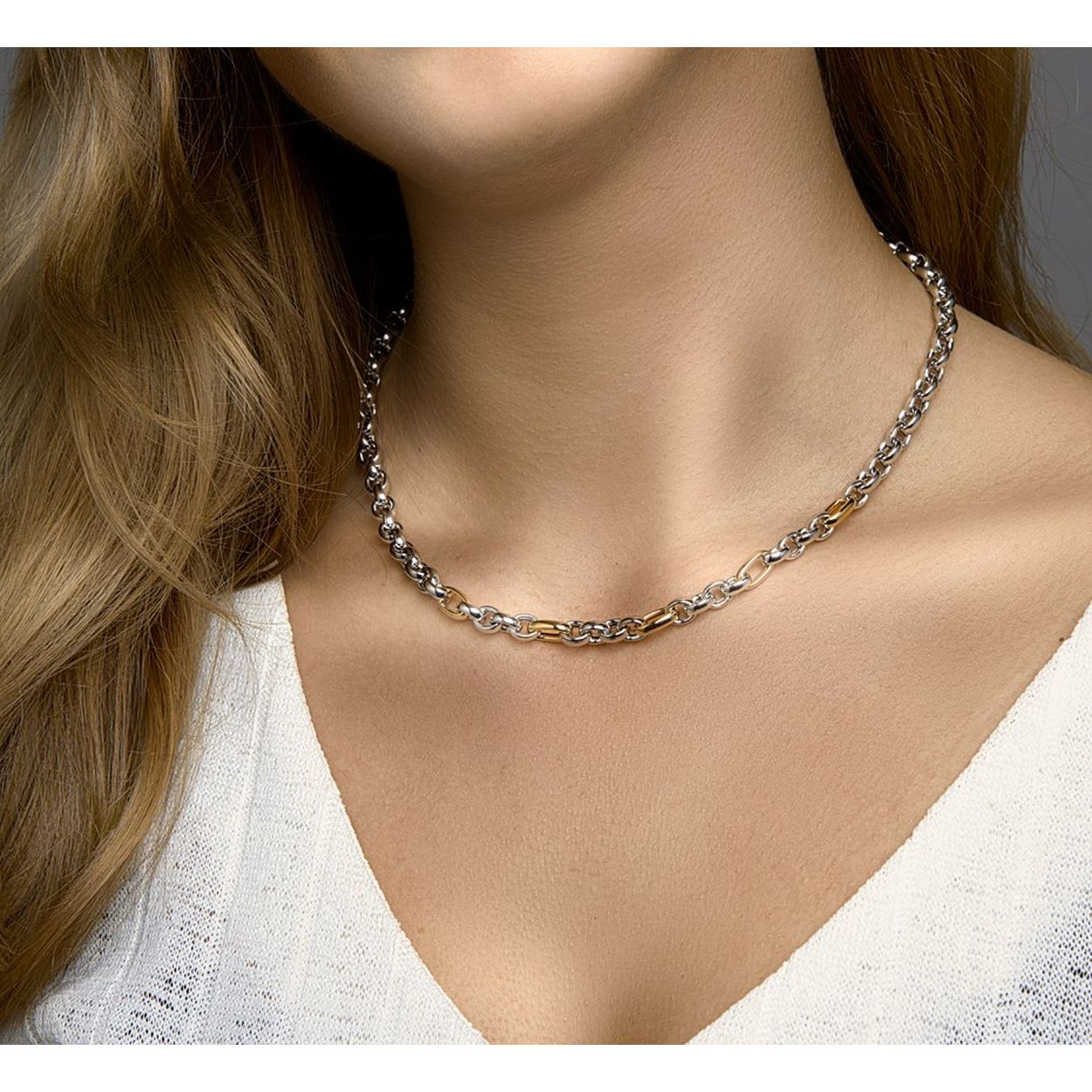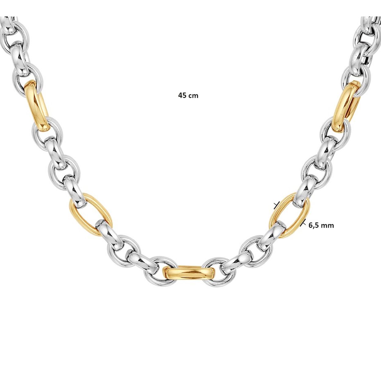 14k Geelgouden en 925 zilveren anker collier met een schakelbreedte van 6.5mm. Het collier heeft een draaglengte van 45cm en is uitgevoerd met een stevige karabijn sluiting.