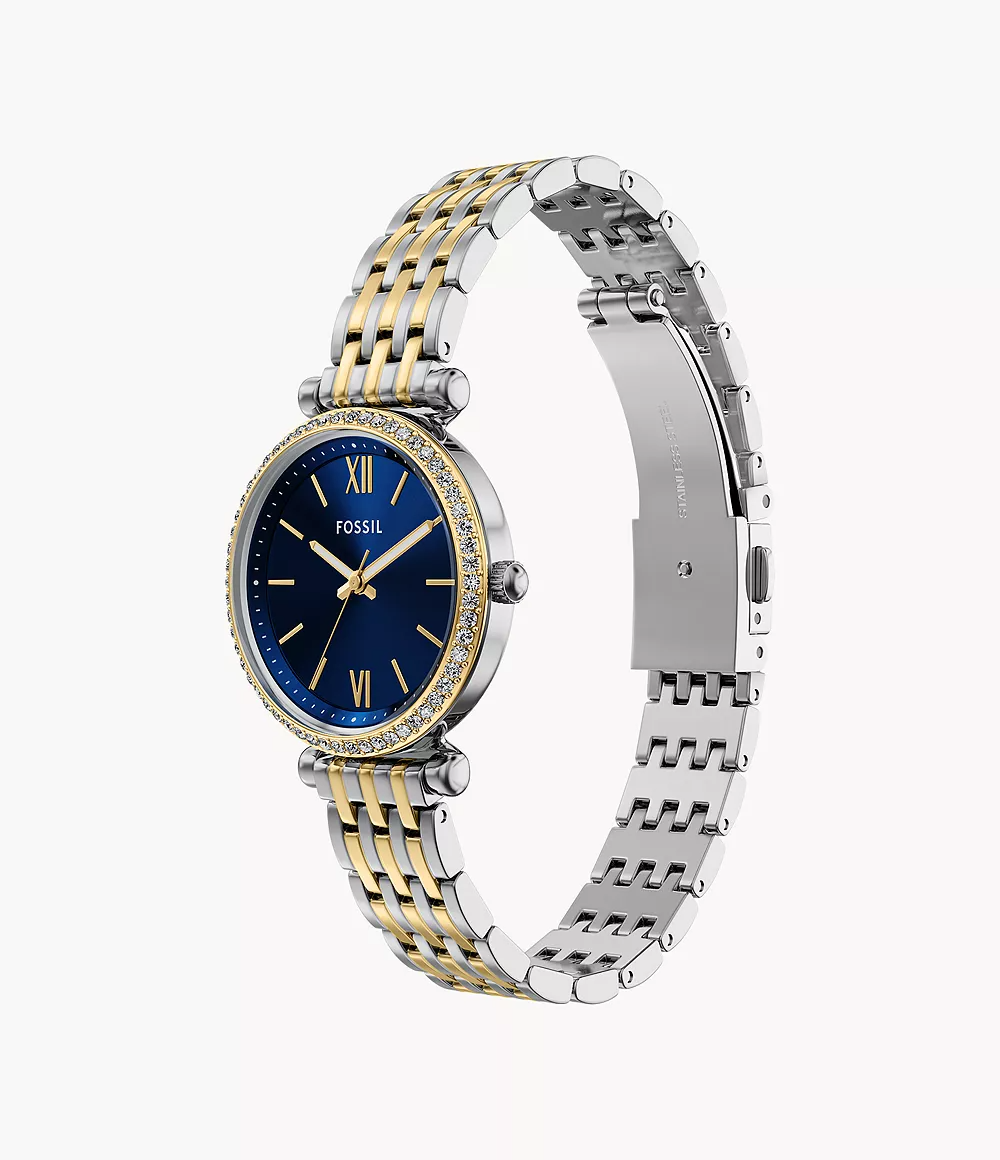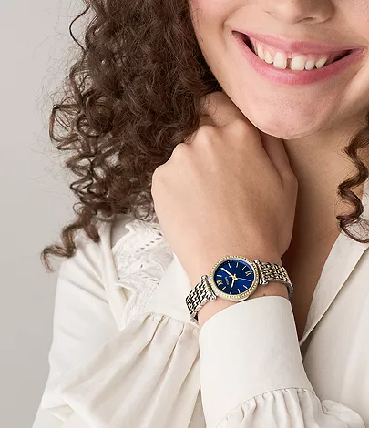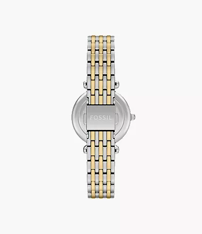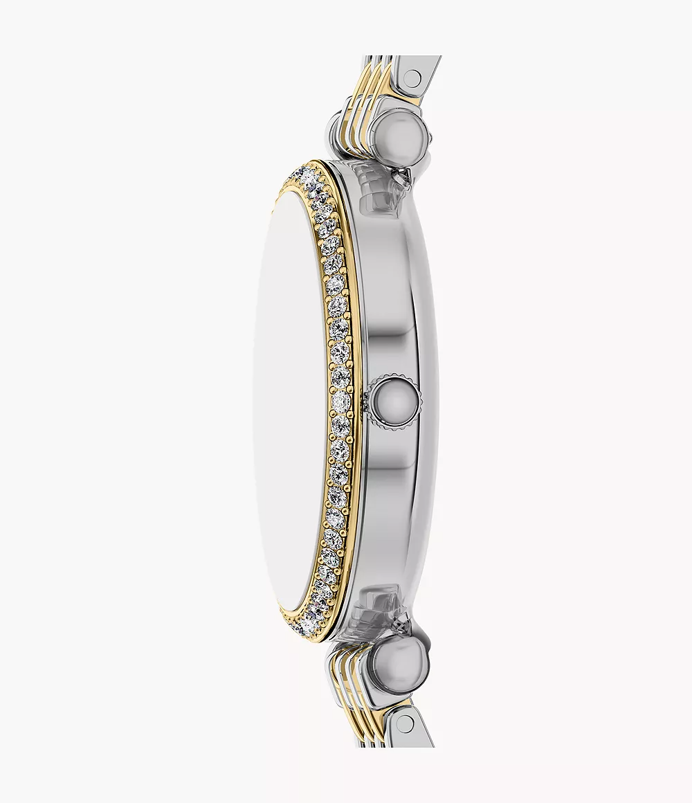 De Fossil Horloge ES5438 is een stijlvolle polshorloge met een kast van roestvrij staal en een 38mm formaat. De band heeft een chique goud-zilver kleur. Deze horloge heeft geen datumaanduiding. Draag het als een elegant accessoire bij formele gelegenheden of om je alledaagse outfit een verfijnde touch te geven.