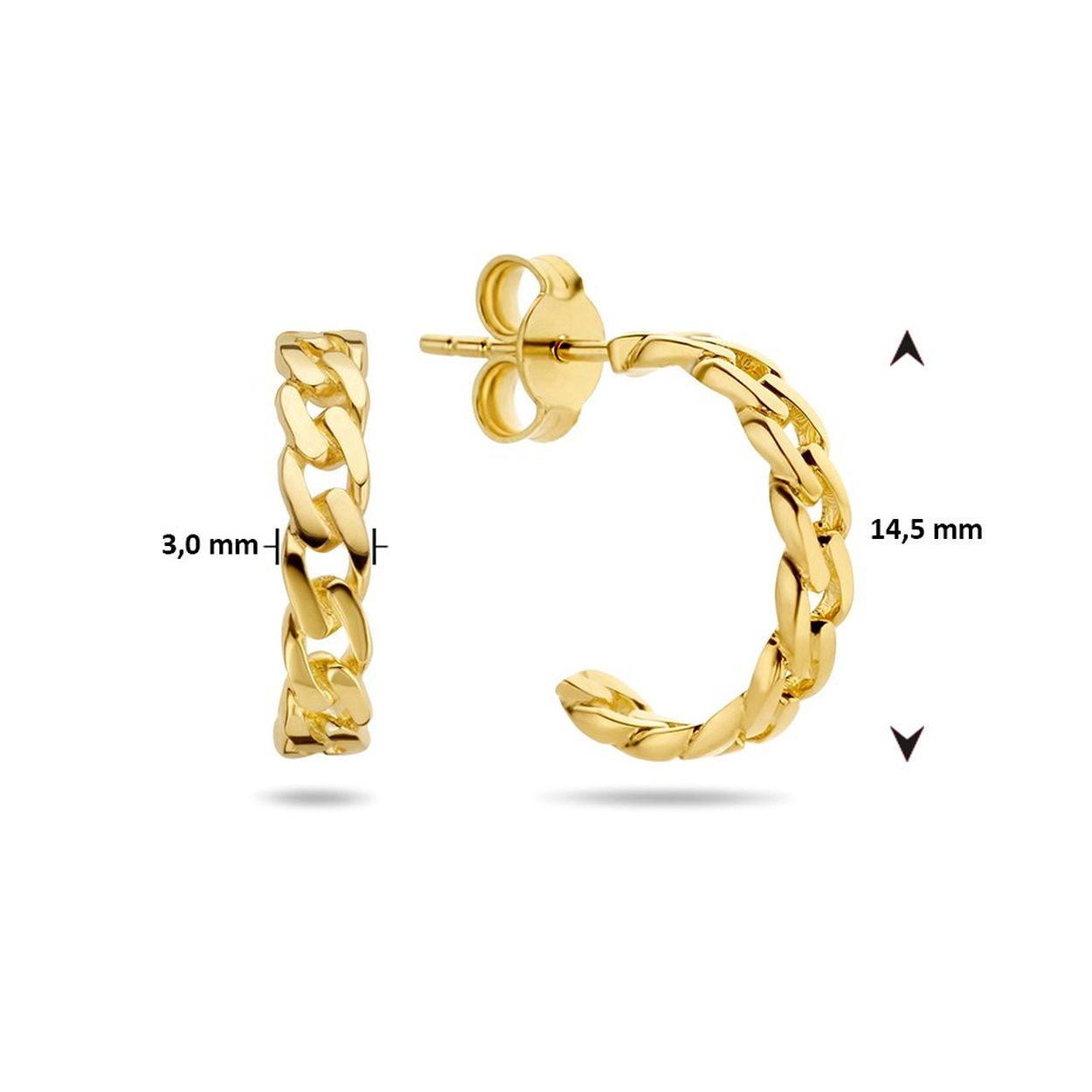 14k Geelgouden stekeroorringen uitgevoerd met een schakelmotief. De oorstekers hebben een afmeting van 14.5x3mm.