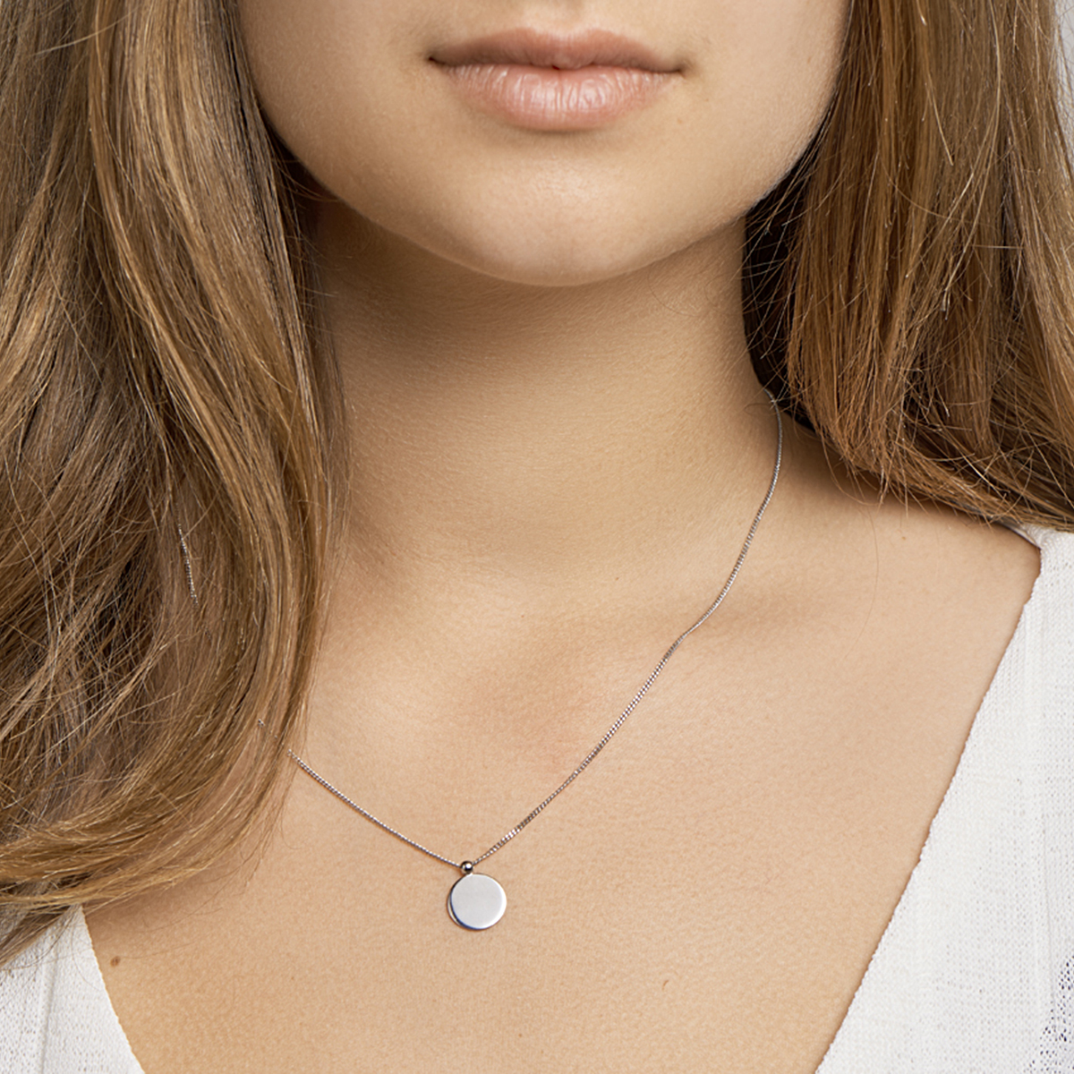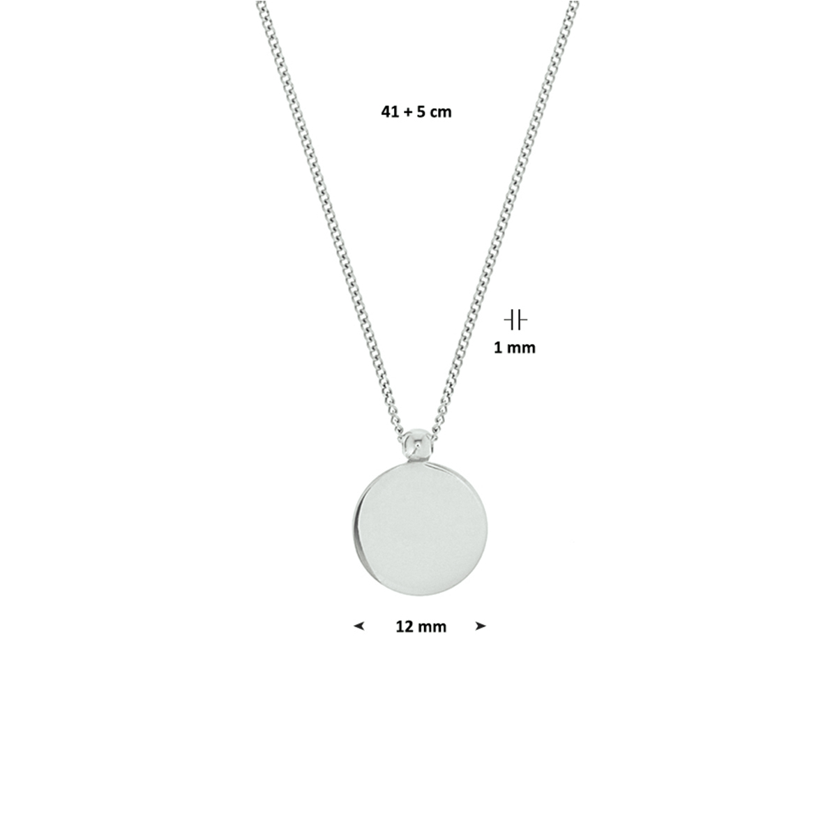 Gerhodineerd zilveren gourmet collier met een ronde hanger en een stevige karabijn sluiting. Het collier heeft een draaglengte van 41cm en een extensie van 5cm. De schakelbreedte is 1mm en het rondje heeft een diameter van 12mm. Door het simplistische model is dit collier met hanger gemakkelijk te combineren met andere sieraden uit onze collectie of uit je eigen stash!
