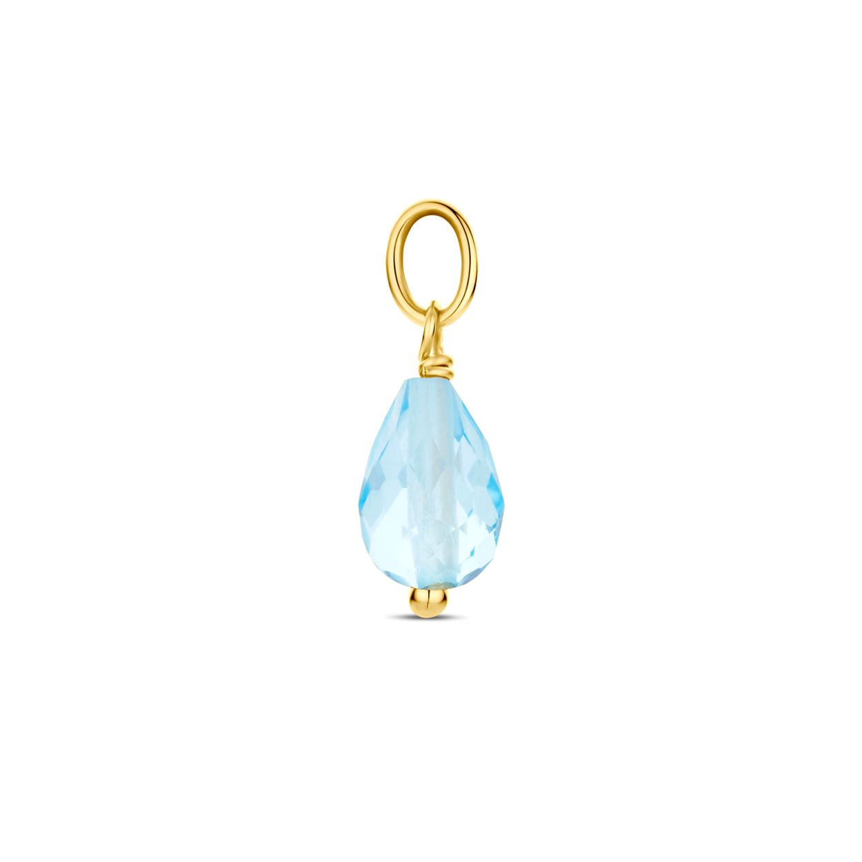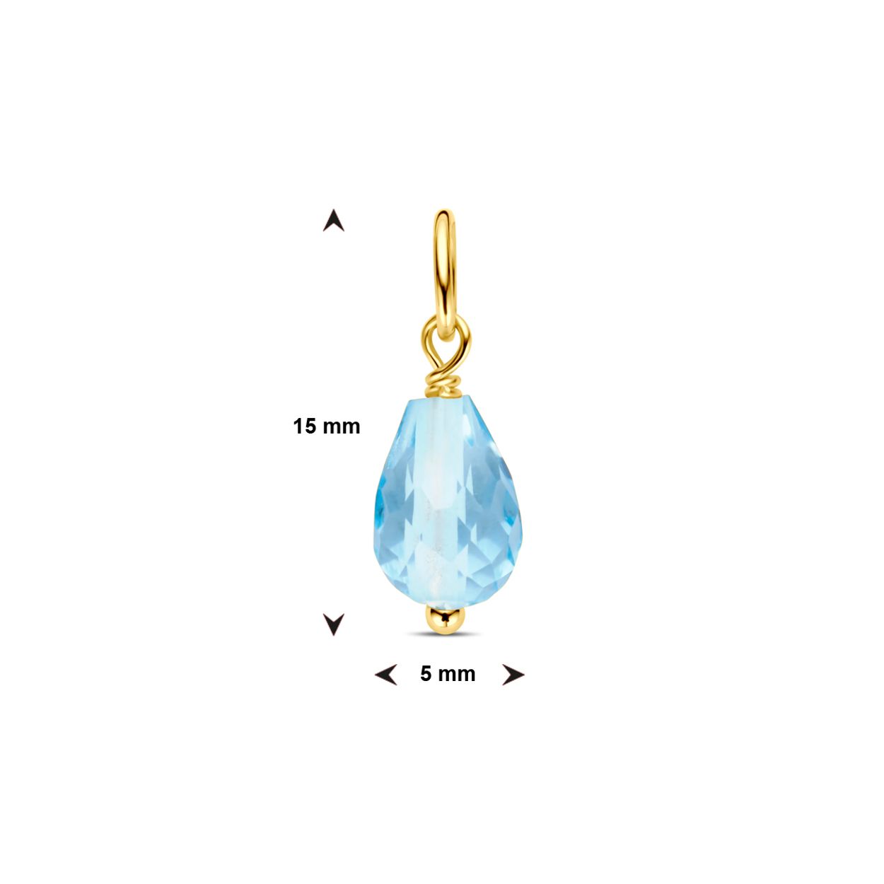 14k Geelgouden hanger uitgevoerd met sky blue topaas. De hanger heeft een totale hoogte van 15mm.