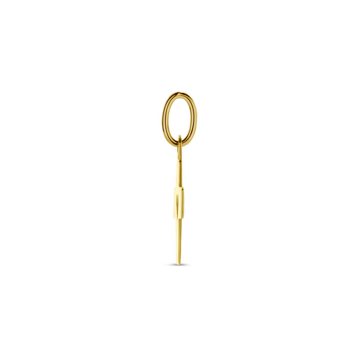 14k Geelgouden hanger uitgevoerd in de vorm van een kruis met een hartje. De hanger heeft een totale hoogte van 18mm.