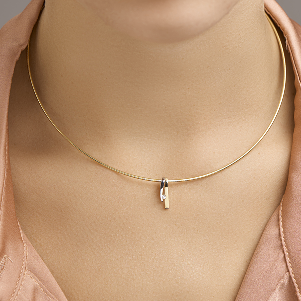 Beschrijving: Bicolor wit- en geelgouden hanger met zirkonia.