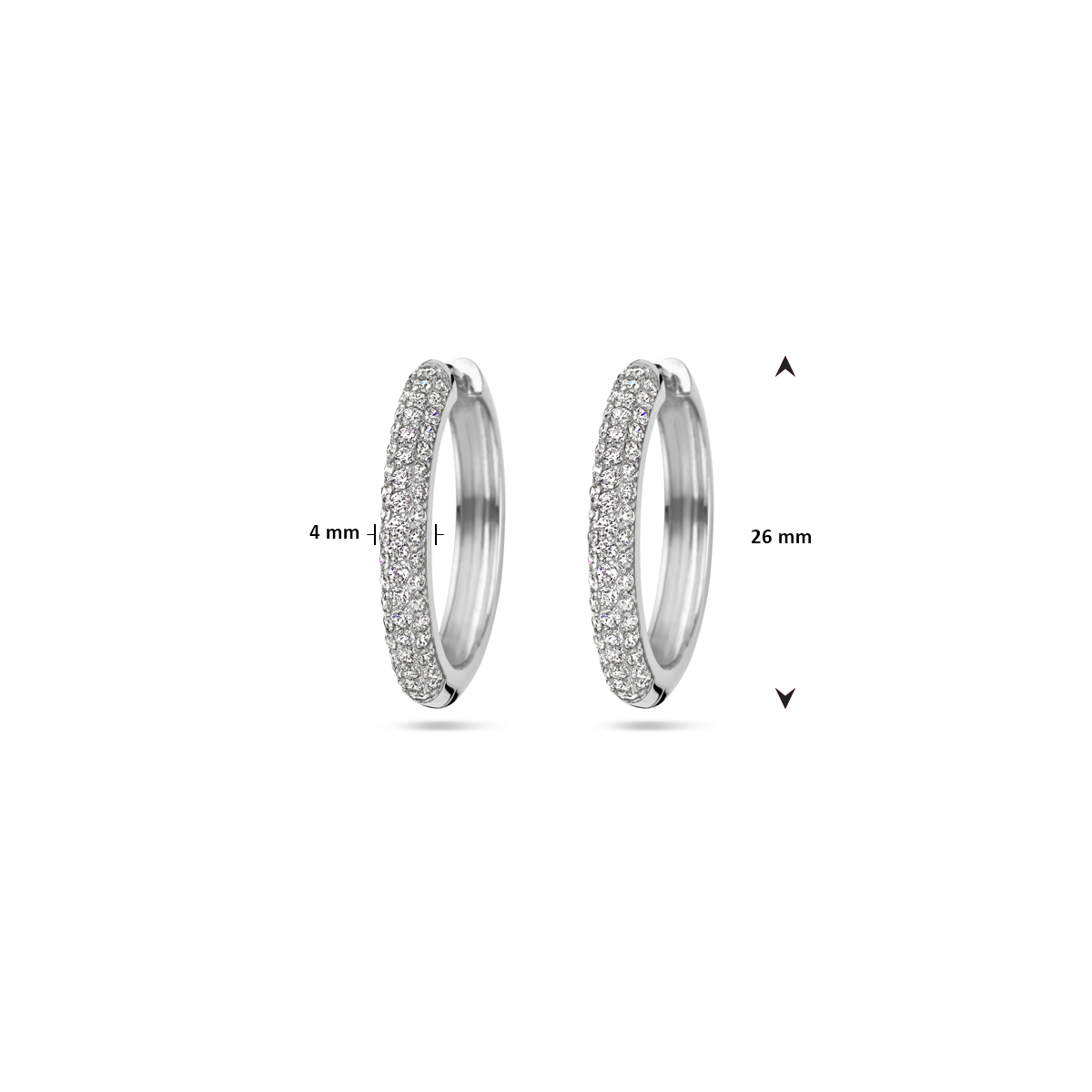Gerhodineerd 925 zilveren klapoorringen uitgevoerd met zirkonia. De klapoorringen hebben een afmeting van 26x4mm.