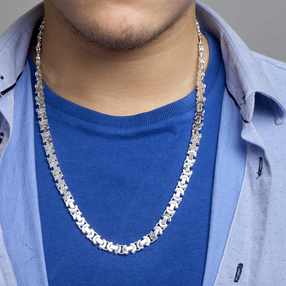 Zilveren lengte artikel met platte konings schakel. De schakelbreedte is 8.5mm.
