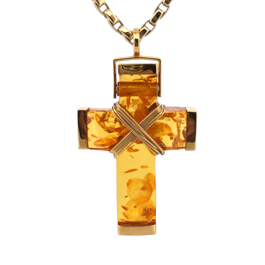 Deze Jh Brummer gouden hanger heeft een prachtig kruisontwerp gemaakt van 18 karaats geelgoud met een amber edelsteen. De hanger is 60 x41 mm groot en straalt een klassieke en elegante uitstraling uit. Draag deze hanger aan een dunne gouden ketting voor een verfijnde en stijlvolle look. Perfect voor zowel alledaagse als speciale gelegenheden. Maak je outfit compleet met deze schitterende hanger!