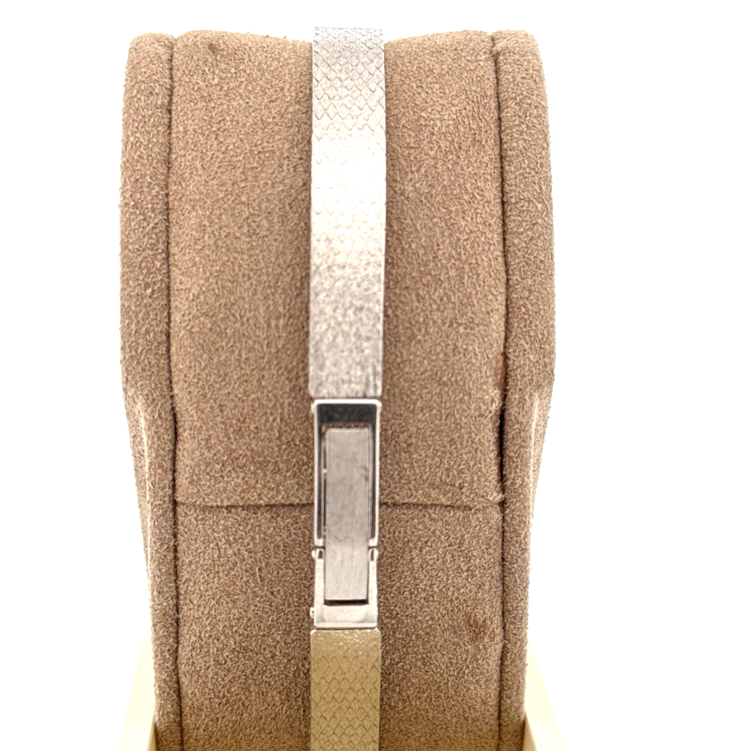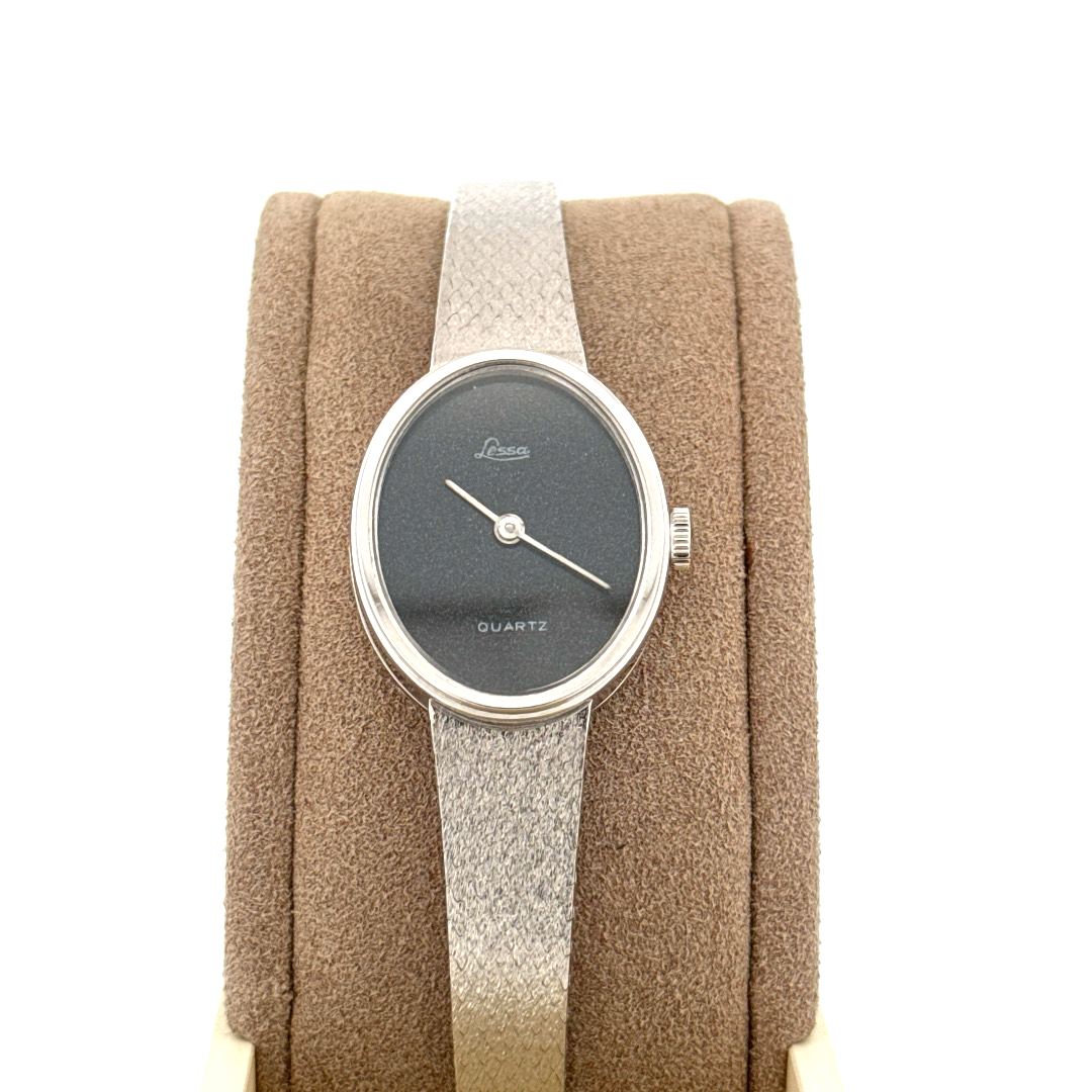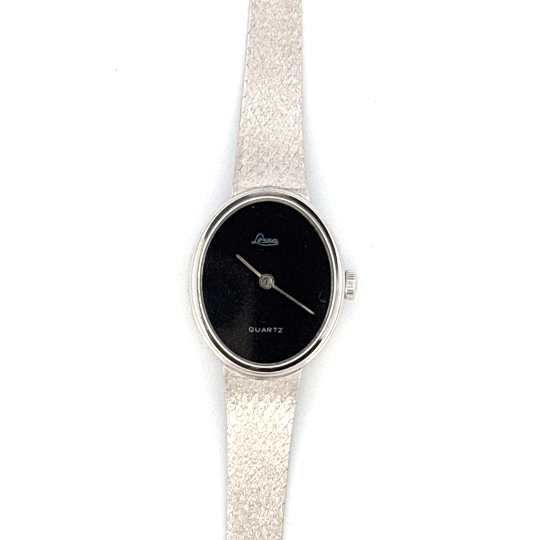 De Lessa Horloge 14krt Witgoud, is een elegante polshorloge met een analoge wijzerplaat en Zwitserse quartz-uurwerk. Het beschikt over een ovale 14k gouden kast met saffierglas en een stijlvolle Milanese mesh band van echt goud. Perfect voor formele gelegenheden, combineer met zilveren of zwarte accessoires voor een verfijnde look.