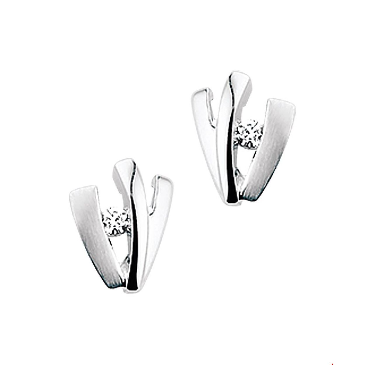 Beschrijving: Witgouden oorknoppen met zirkonia en een poli/matte afwerking.