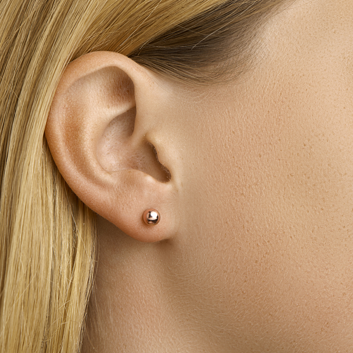 Beschrijving: Rosegouden oorknoppen met een bol.