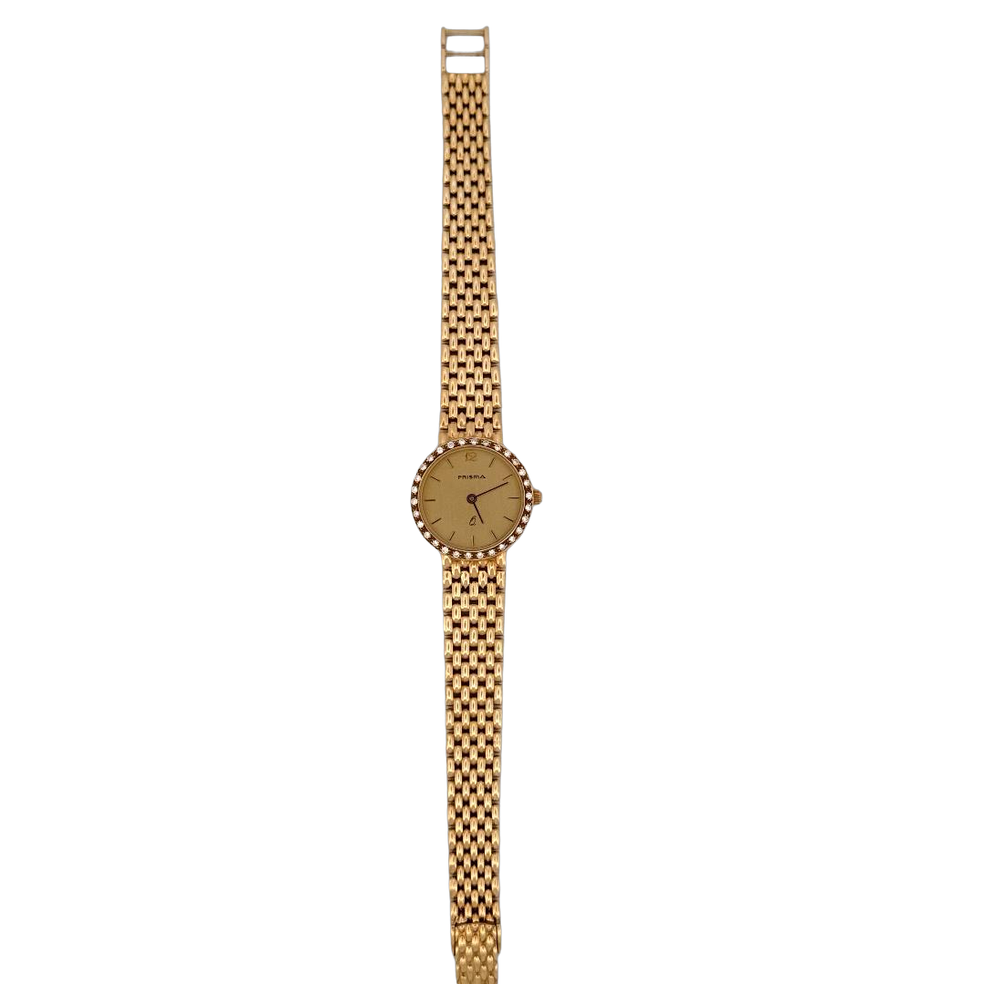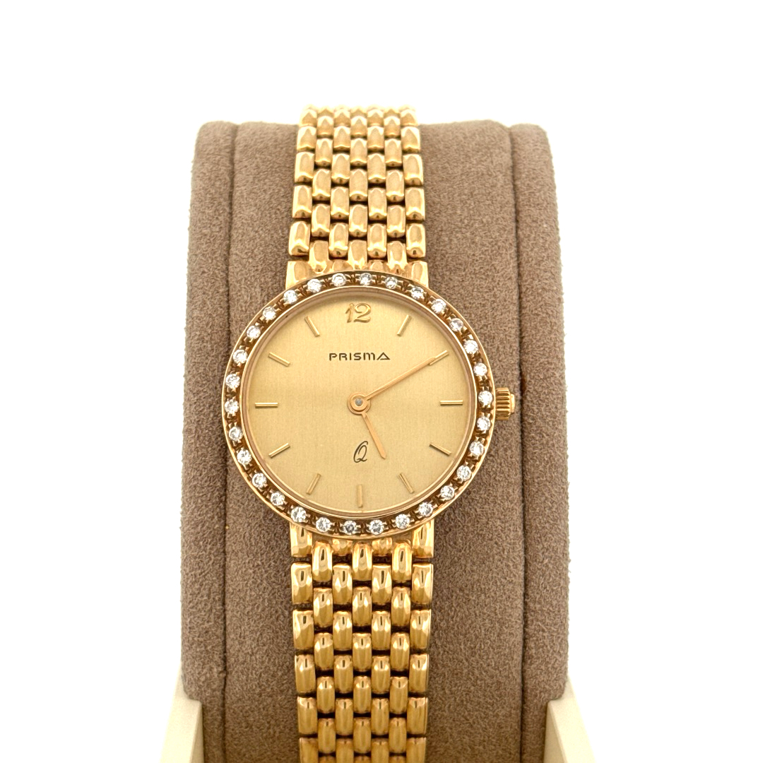 De Prisma Horloge 14krt goud met Zirkonia, biedt luxe met zijn goudkleurige design, analoge weergave en Milanese mesh band van echt goud. De 24,5 mm ronde kast is versierd met zirkonia, zonder datumfunctie. Draag dit elegante horloge voor formele gelegenheden of als verfijnd accessoire voor je dagelijkse outfit.