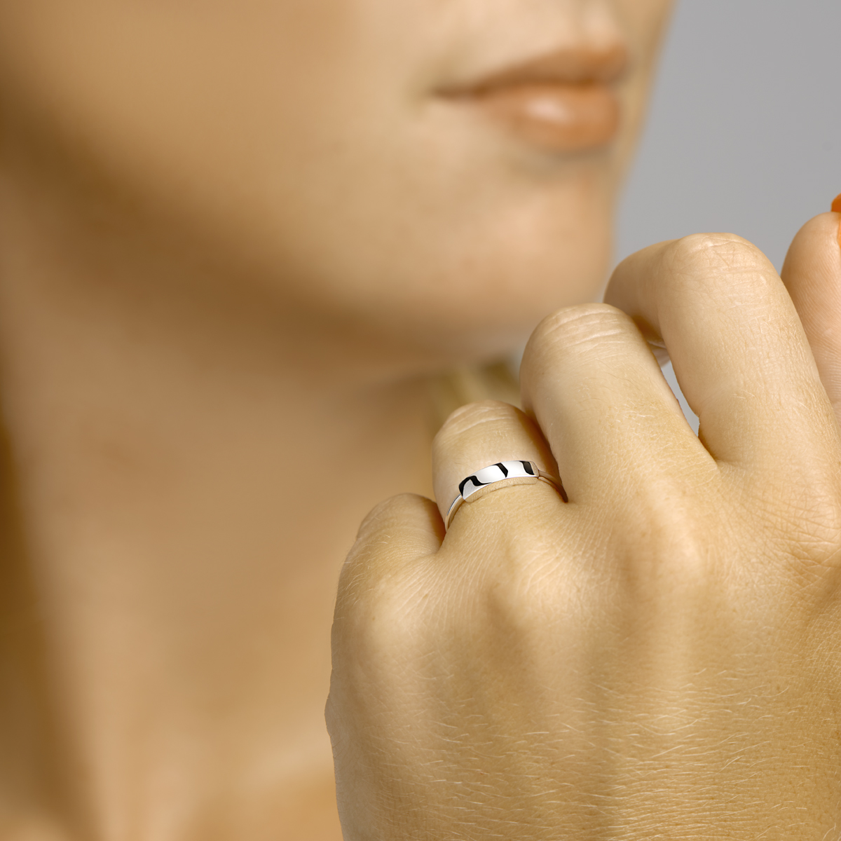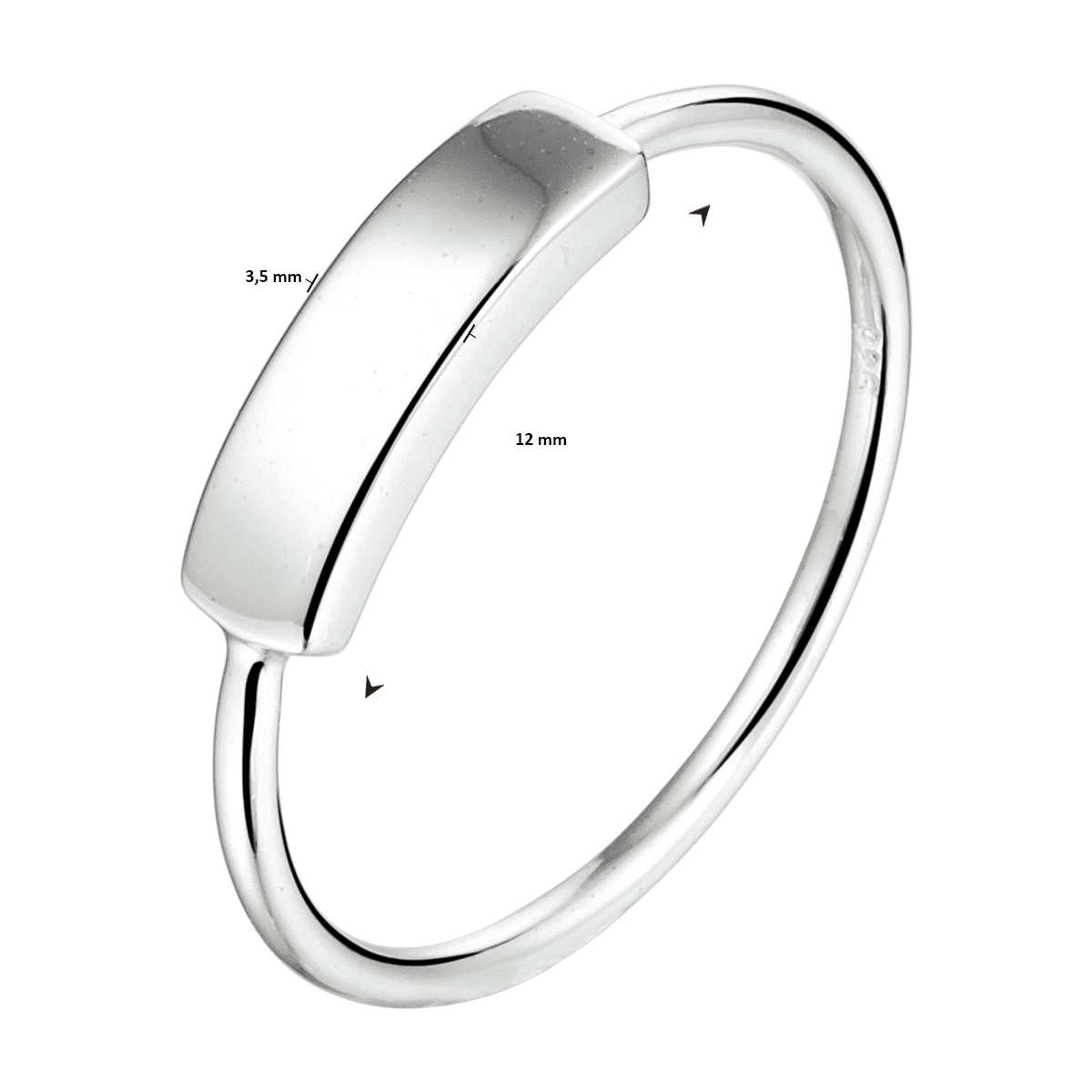 Gerhodineerd 925 zilveren ring uitgevoerd met een balkje. De ring heeft een breedte van 3.5mm.