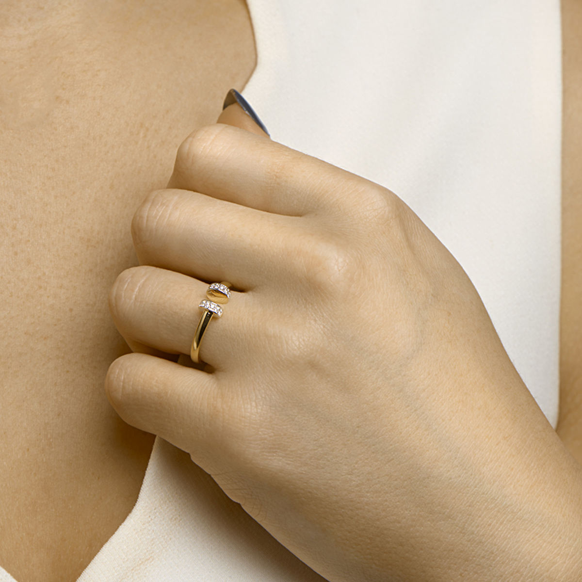 14k Geelgouden ring uitgevoerd met een schitterende diamant rij. De ring heeft een breedte van 5.5mm.