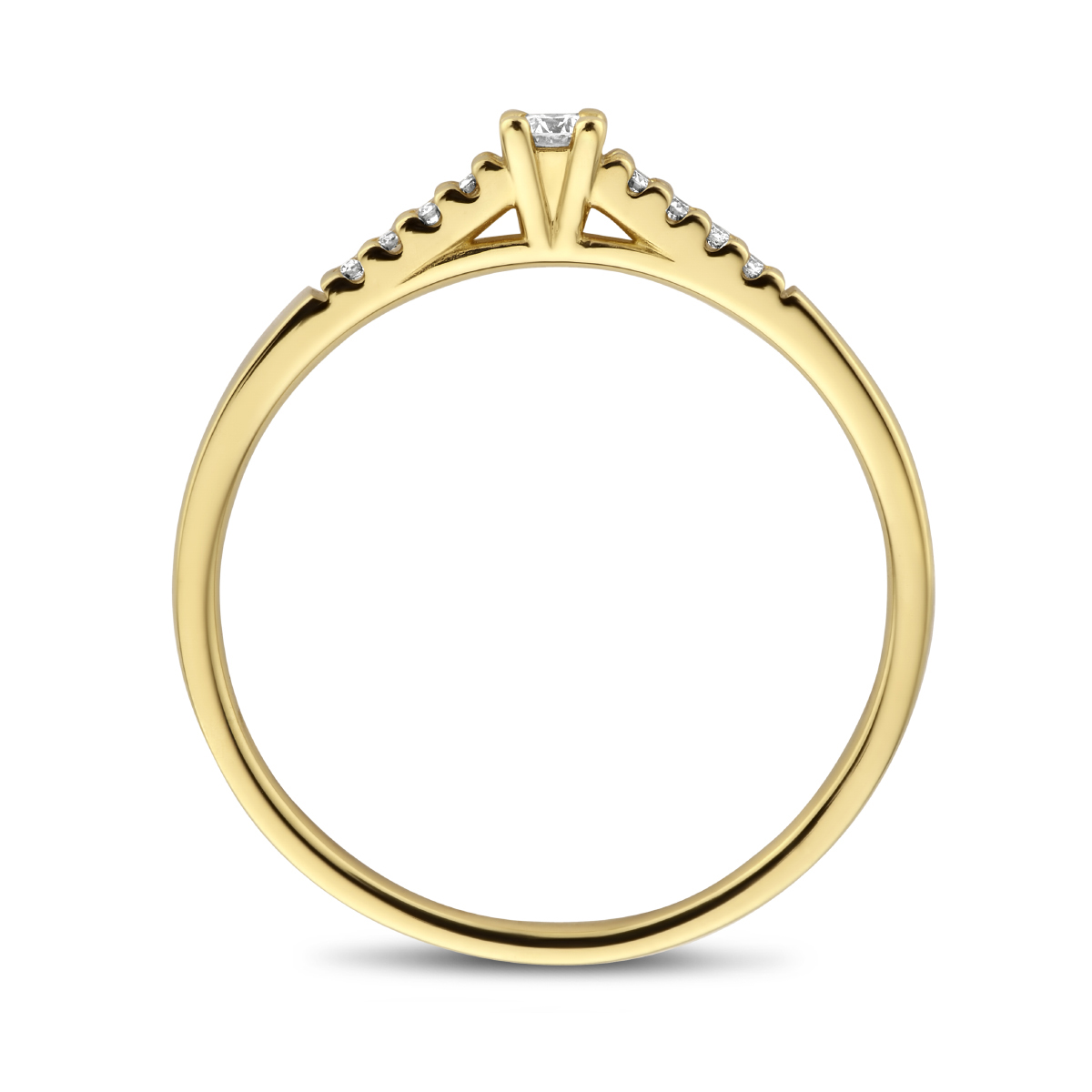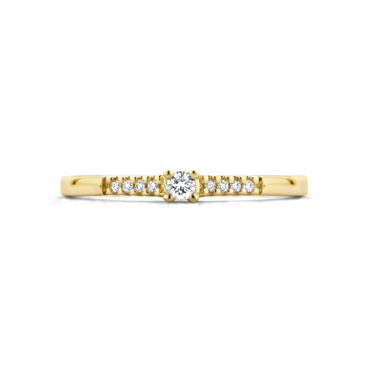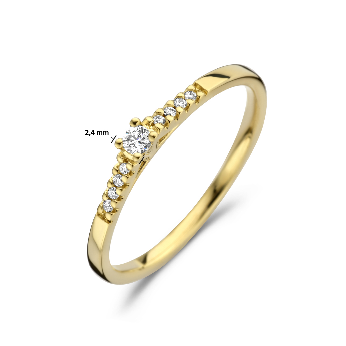 14k Geelgouden ring uitgevoerd met een schitterende diamant rij. De ring heeft een breedte van 2.4mm.
