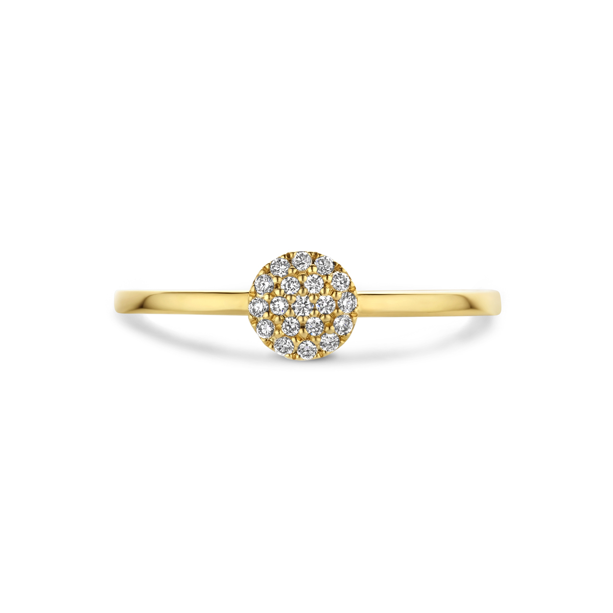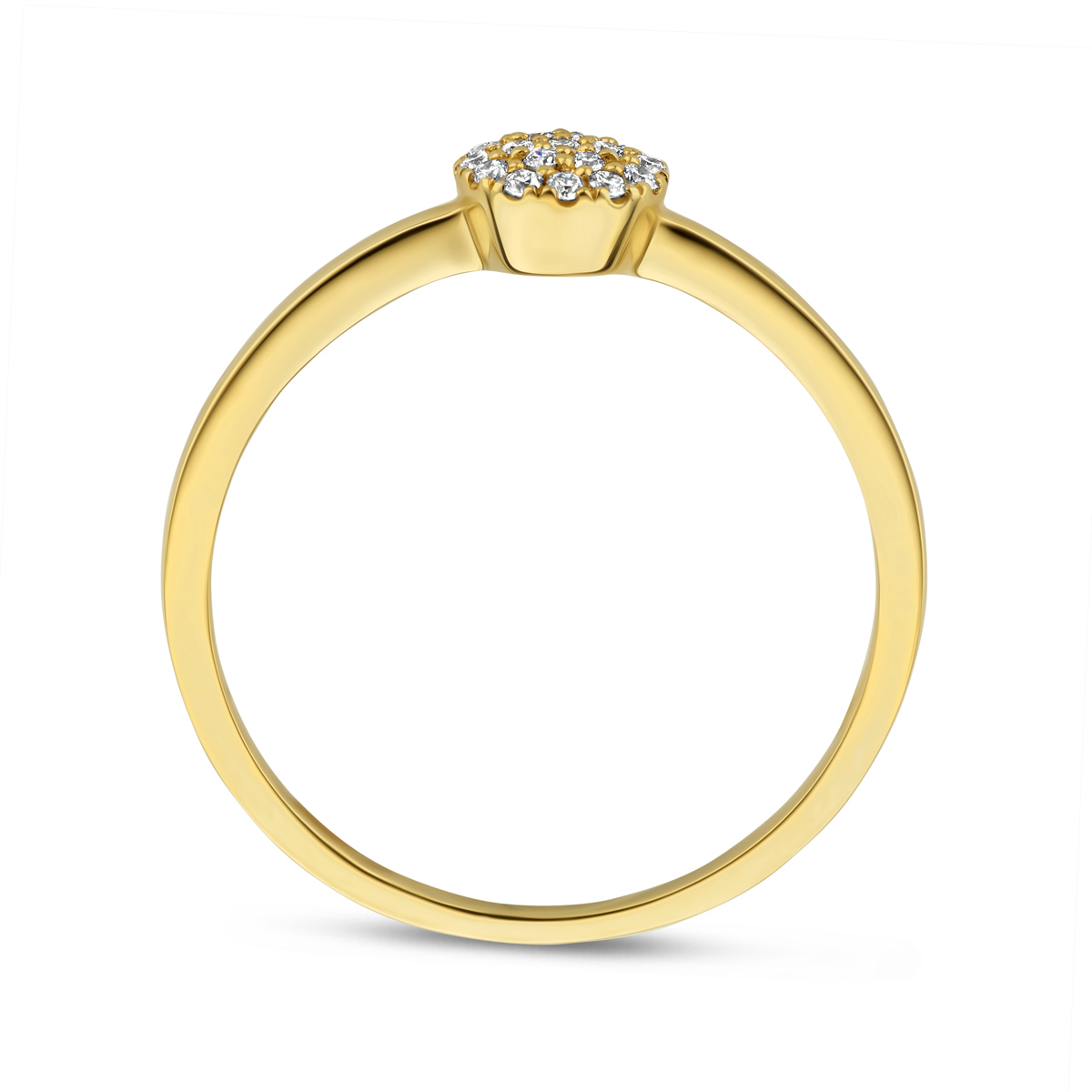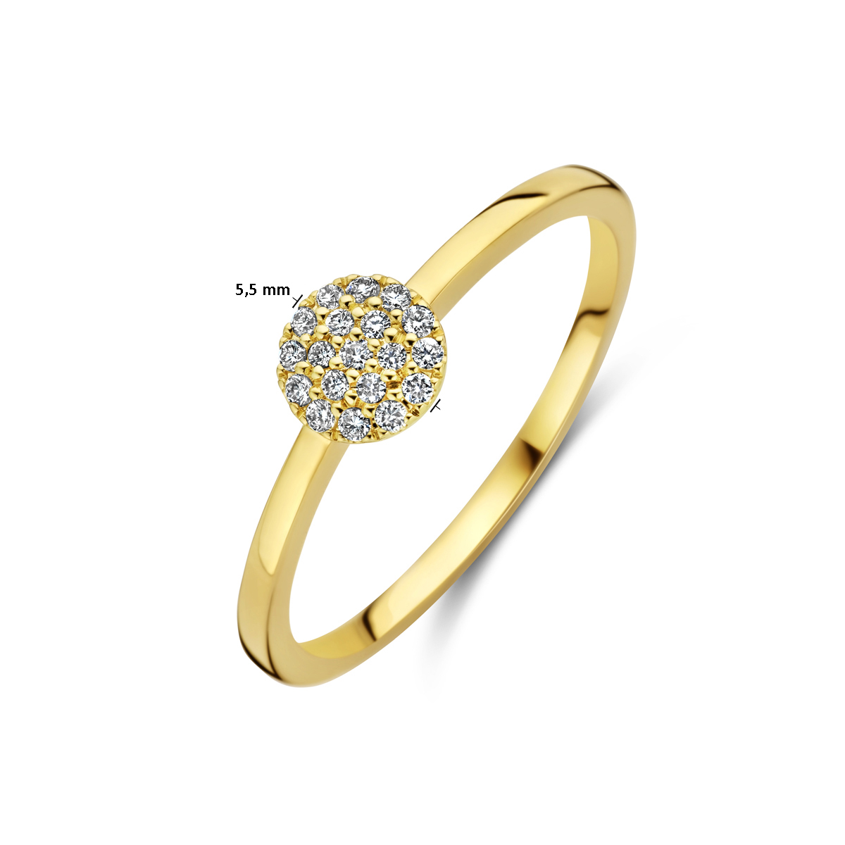 14k Geelgouden ring uitgevoerd met schitterende diamant. De ring heeft een breedte van 5.5mm. Het diamantgewicht is 0.09ct.