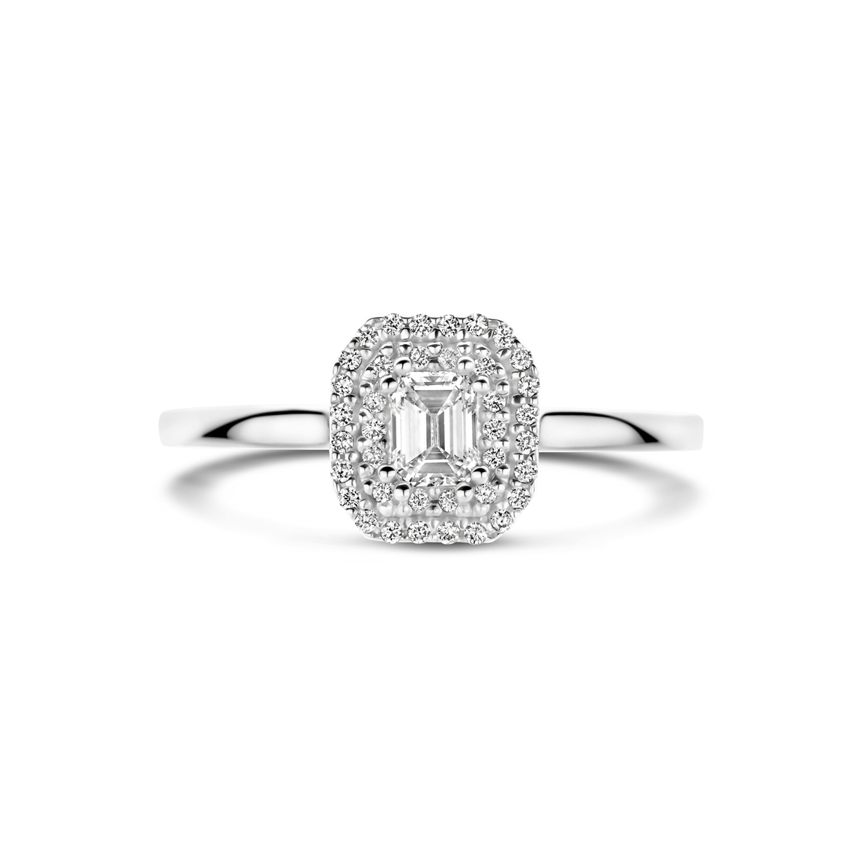 Deze prachtige witgouden ring met baguette geslepen diamanten is een echte eyecatcher. De ring heeft een uniek en elegant ontwerp dat perfect is voor zowel dagelijkse slijtage als speciale gelegenheden. De beste manier om deze ring te dragen is om hem te combineren met andere fijne sieraden voor een moderne en stijlvolle look. Voeg deze ring toe aan je collectie en pronk met zijn tijdloze schoonheid.
