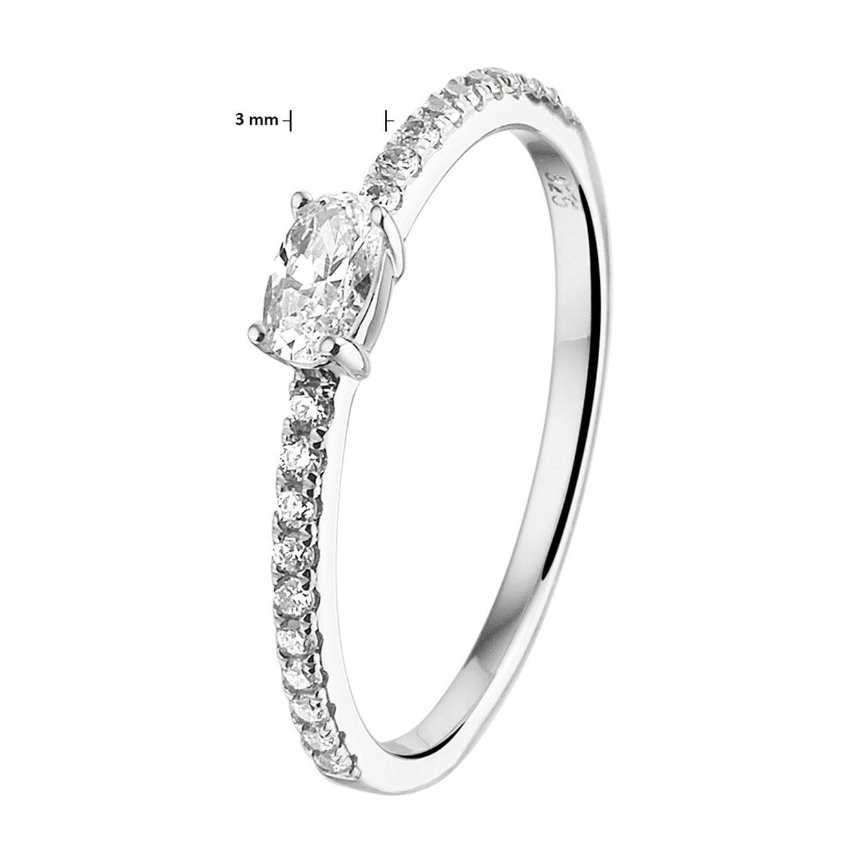 Gerhodineerd 925 zilveren ring uitgevoerd met een schitterende zirkonia rij. De ring heeft een breedte van 3mm.