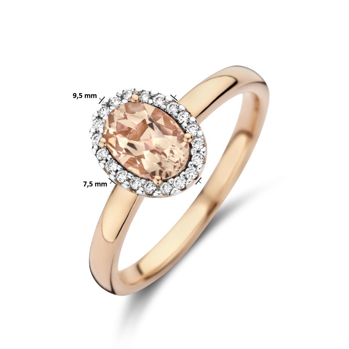 14k Rosegouden ring uitgevoerd met een schitterende diamant rij.