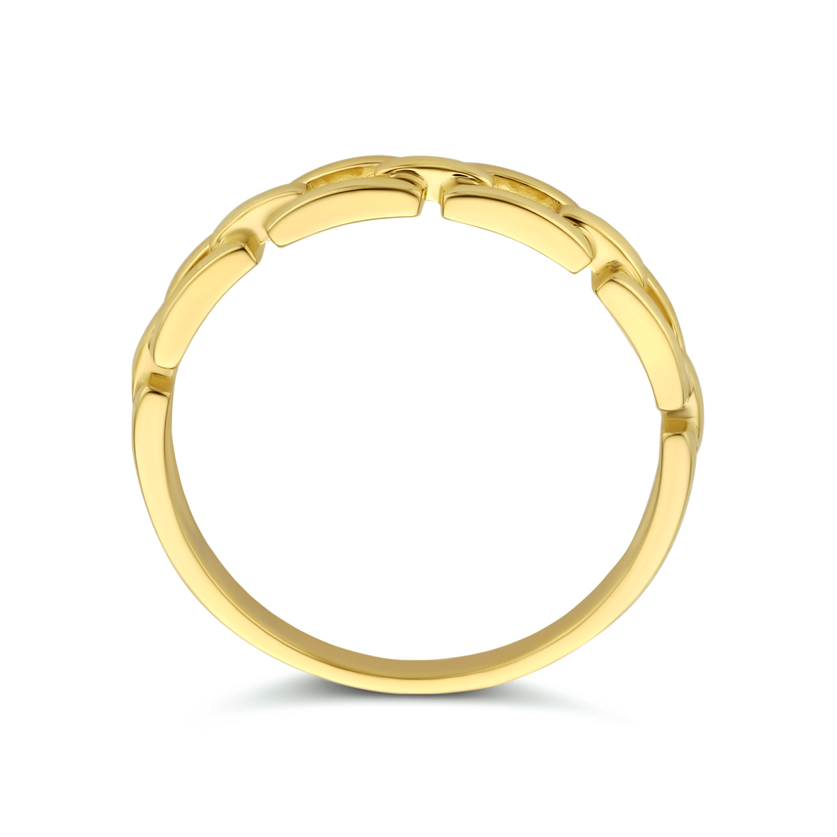 14k Geelgouden ring uitgevoerd met een schakelmotief. De ring heeft een breedte van 3mm.