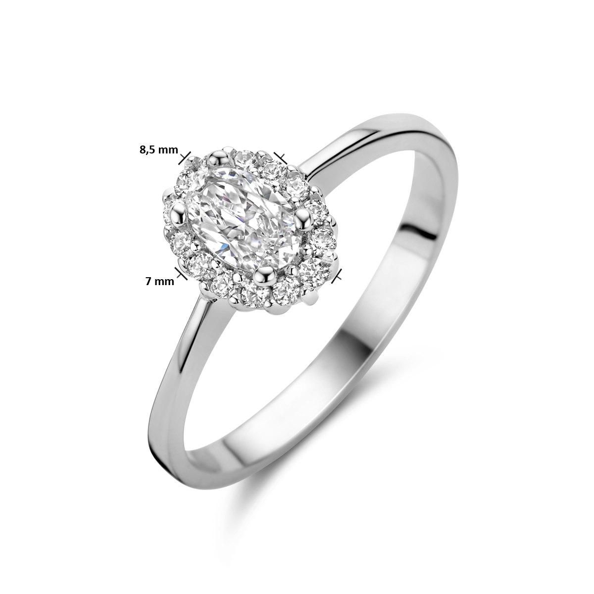 Gerhodineerd 925 zilveren ring uitgevoerd met schitterende zirkonia. De ring heeft een breedte van 8.5mm.