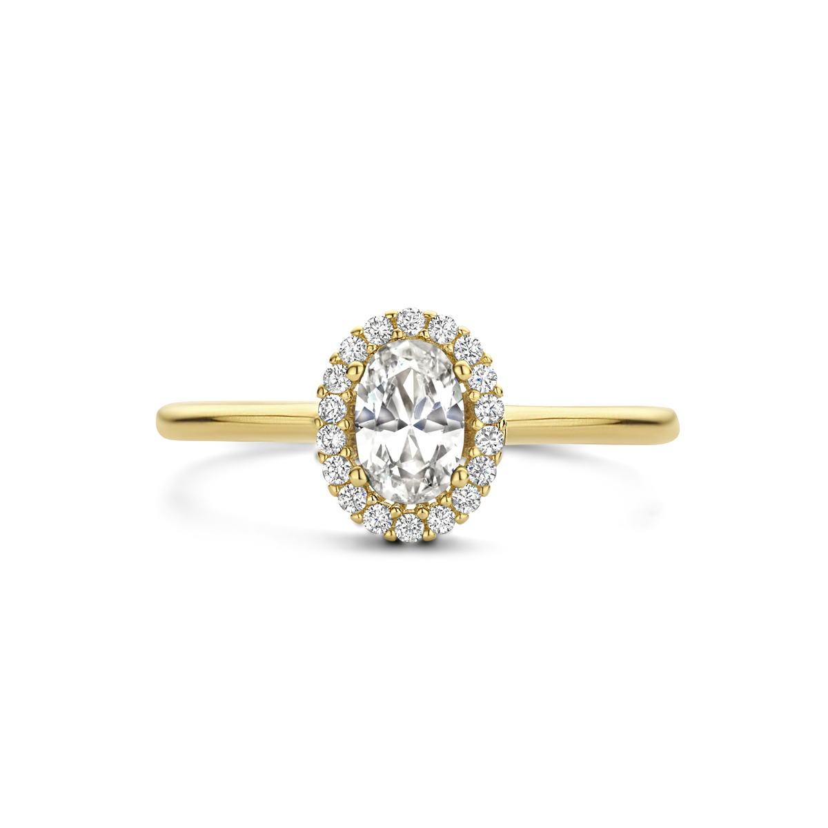 14k gouden entourage ring met zirkonia's.
