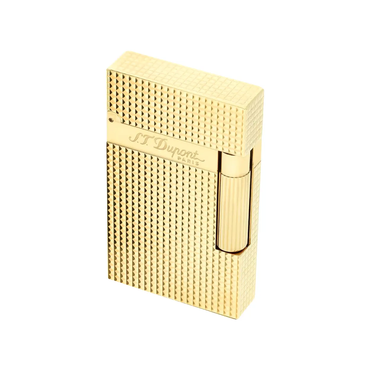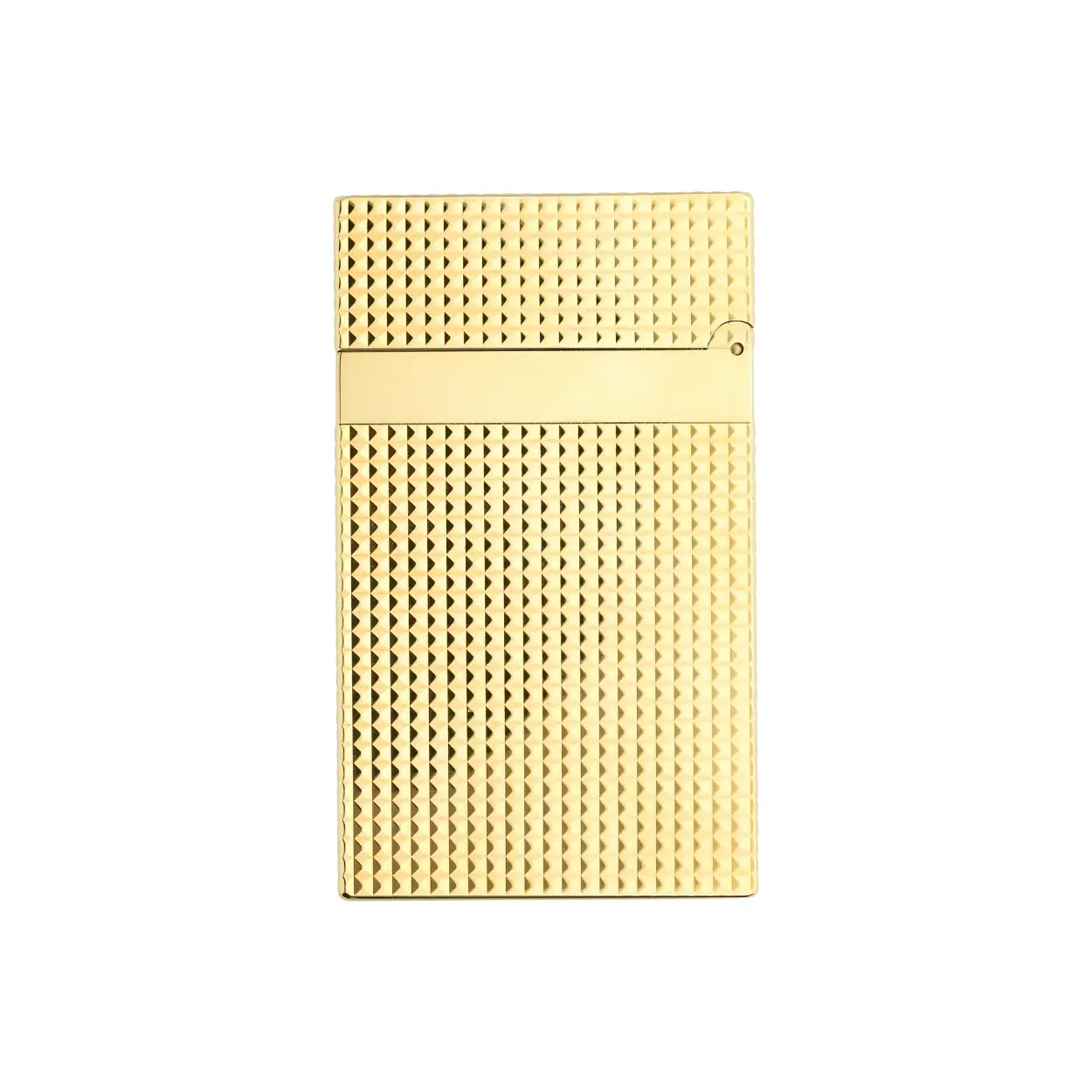 Dubbele vlam gele aansteker. Versierd met het iconische huispatroon: diamantpunt en verguld in geel goud. Met de bekende "Cling" bij het openen. Bijbehorende aanstekersteen: zwart (REF 900600). Bijbehorende gasvulling: geel (REF 900432). Aansteker geleverd zonder benzine, navulling apart verkrijgbaar.