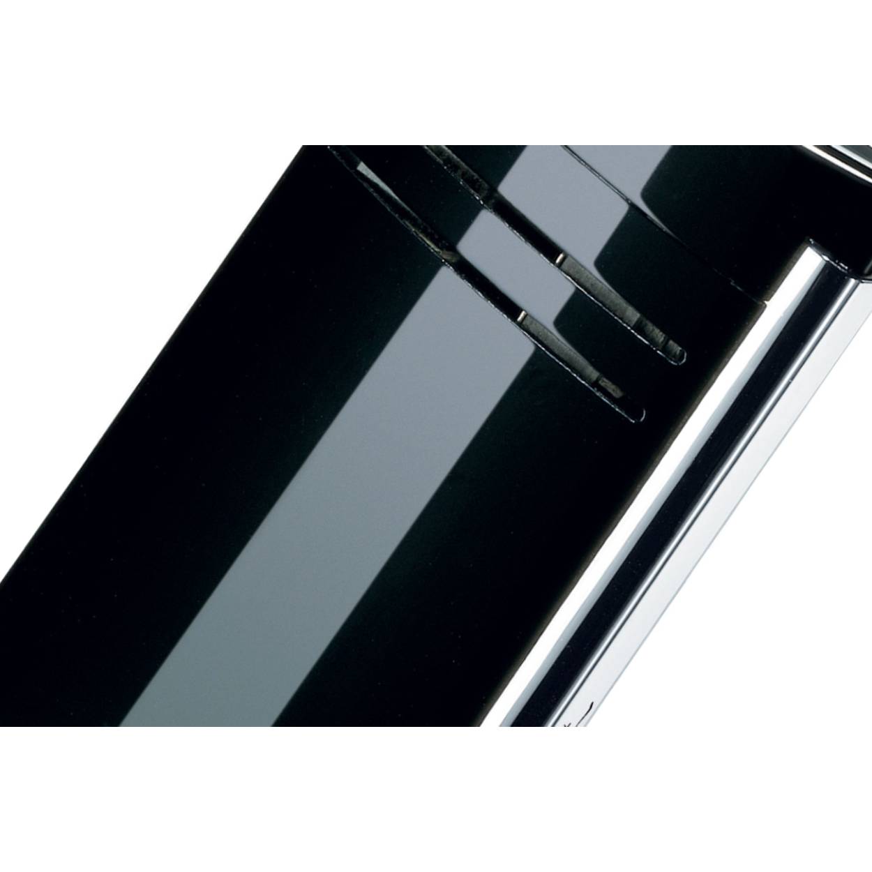 Deze aansteker bevat een glazend zwarte behuizing en is gemaakt van chroom.