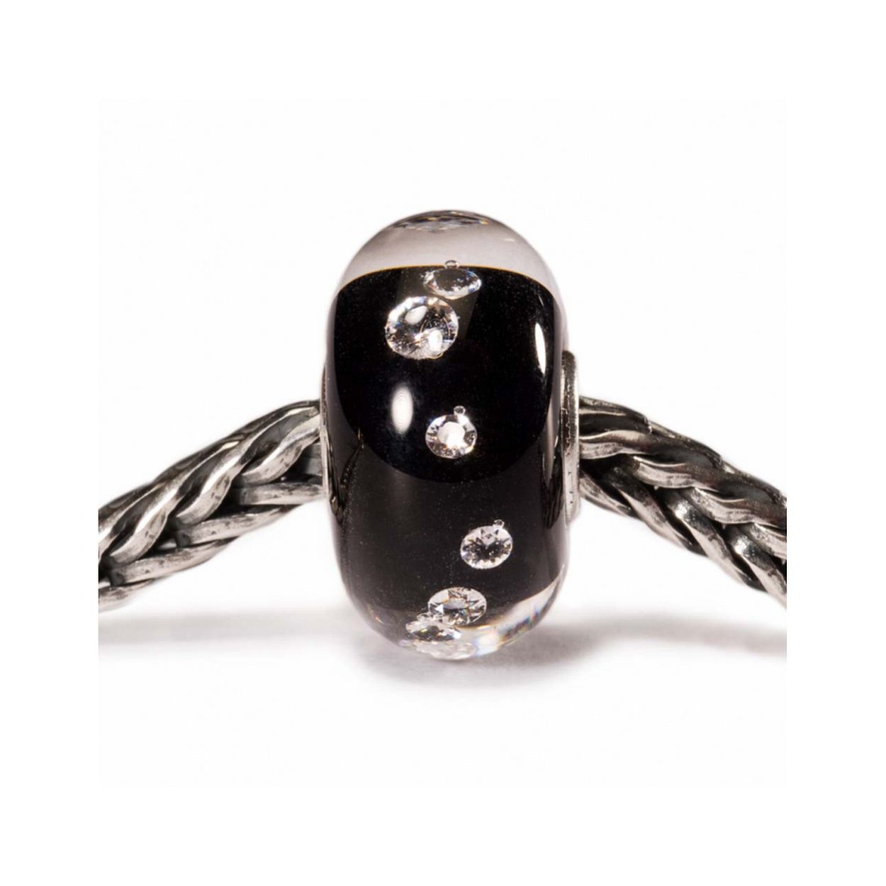 Diamond-like zwart: 'Diamonds are a girl's best friend' zong Marilyn Monroe in de film 'Gentlemen Prefer Blondes' uit 1953. Diamanten hebben ons inderdaad altijd al gefascineerd en deze kraal is ingelegd met 13 zirkonia's. Deze kraal bestaat uit zwart glas met een zilveren kern.