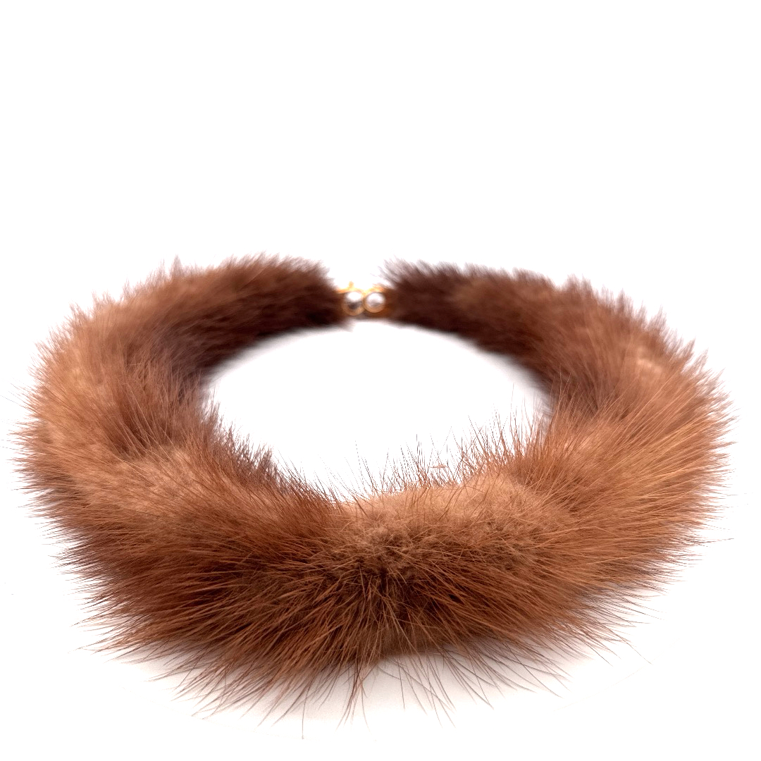 Deze zeldzame bont choker is voorzien van een prachtige 18K geelgouden sluiting. Het is een uniek stuk dat luxe en elegantie uitstraalt. Draag deze choker op een simpele blouse of jurk om je outfit een extra touch of glamour te geven. Het zal zeker de aandacht trekken en je laten stralen op elk feest of evenement.