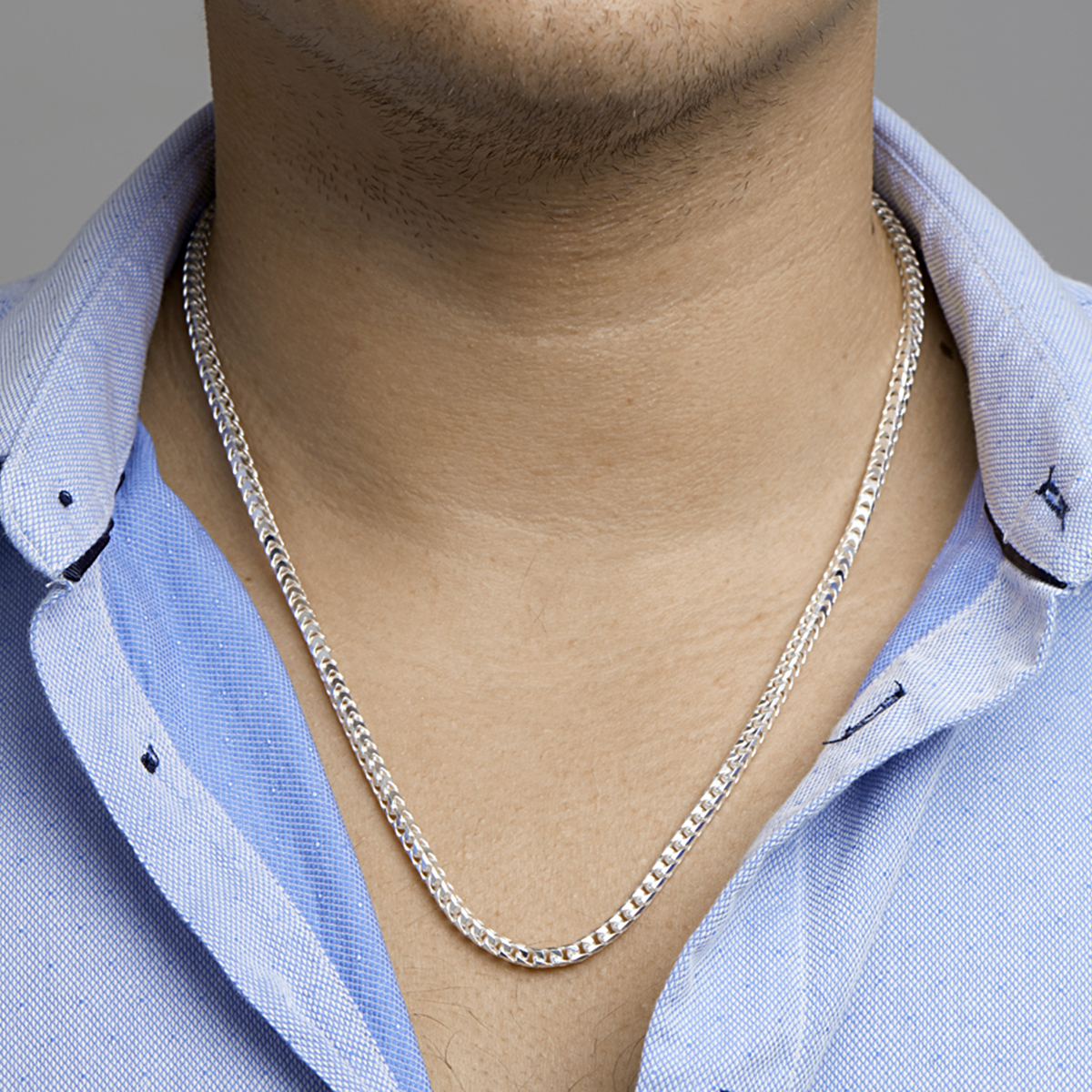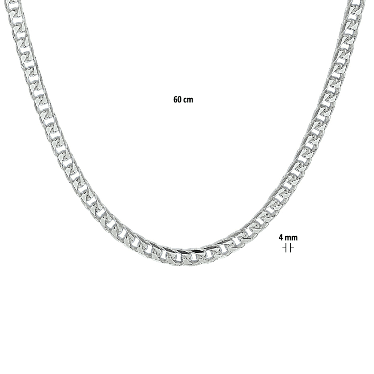 Zilveren collier met een gourmet schakel. Het collier heeft een schakelbreedte van 4mm en een draaglengte van 60cm. Uitgevoerd met een karabijn sluiting.